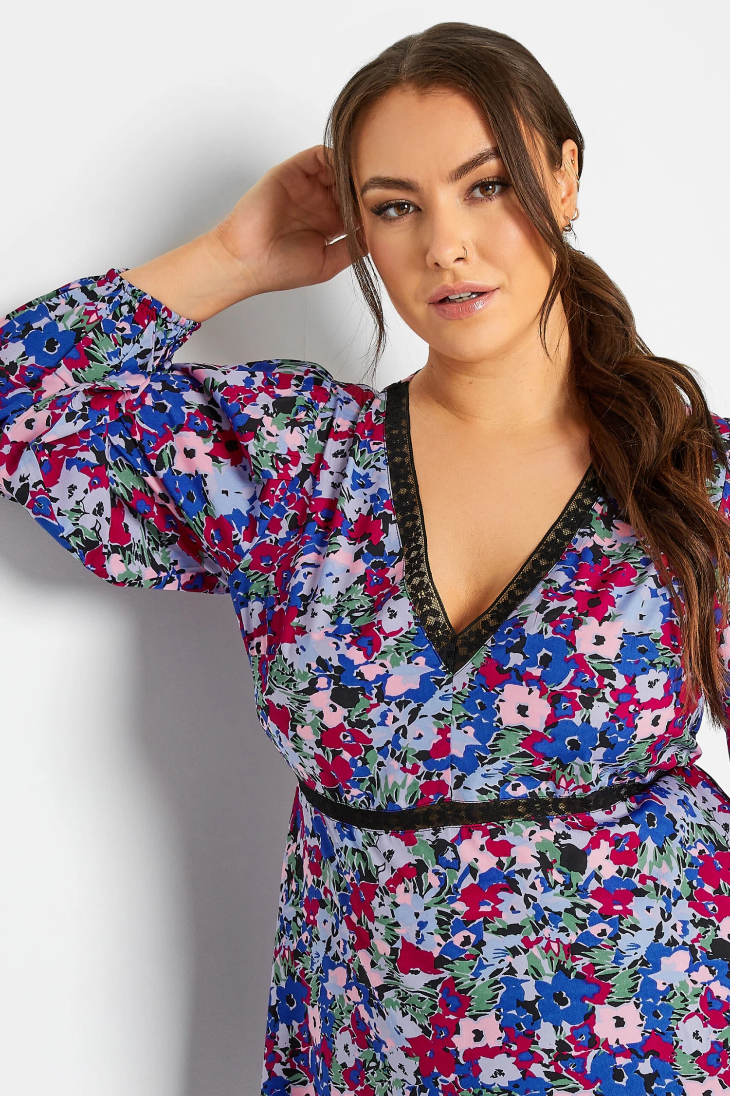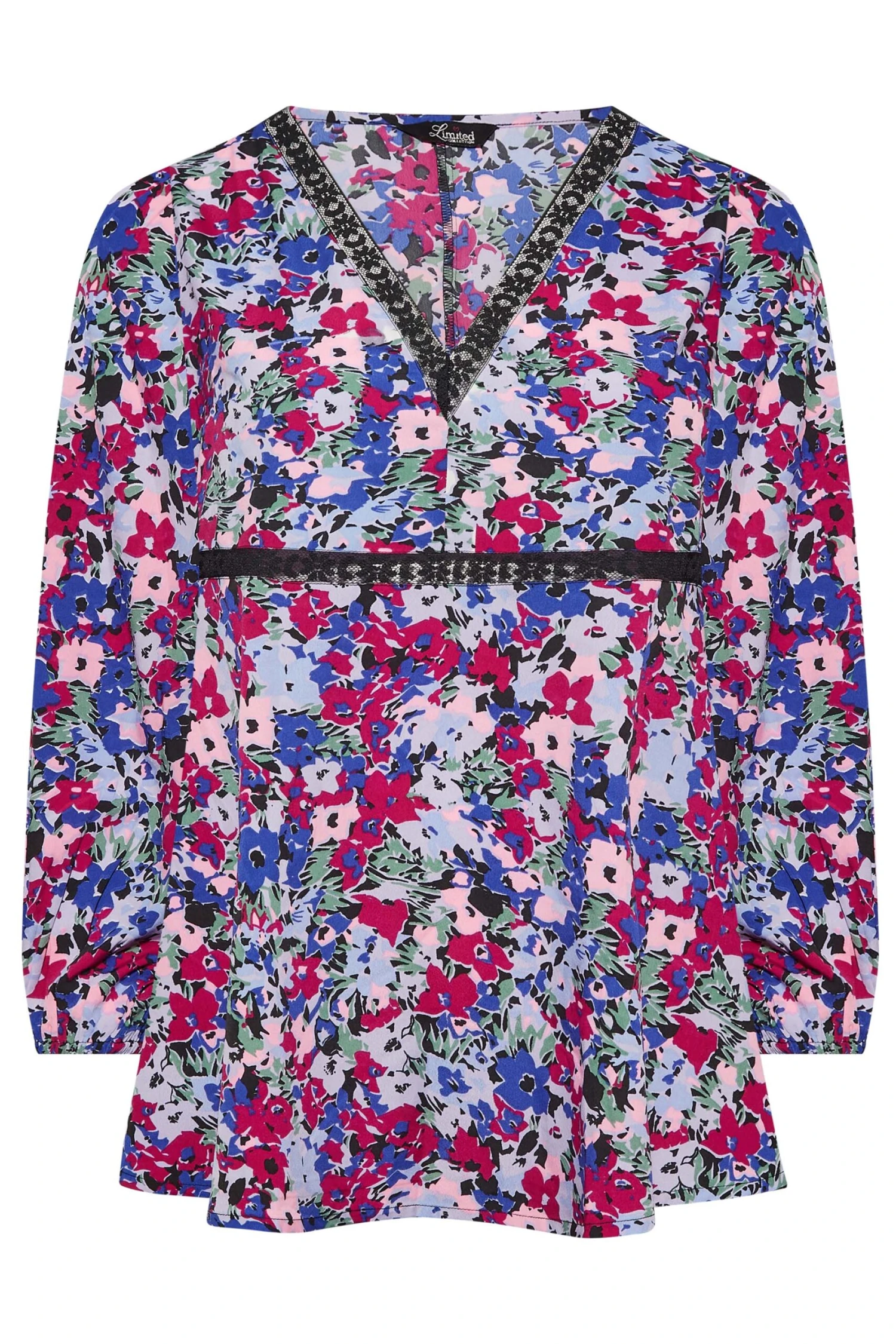 Wondering what to wear this weekend? Why not try this floral blouse from Limited Collection. Made from a comfortable woven fabric, it features long puff sleeves, a v-neckline and lace detailing. Complete the look with leather look leggings and heels for your next night out.