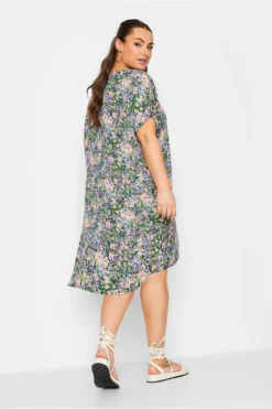 YOURS LONDON Curve Navy Blue & Pink Floral Mesh Panel Skater Dress