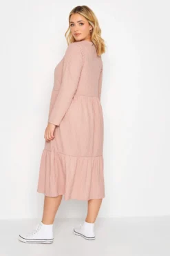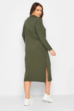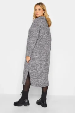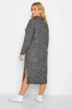 YOURS Curve Grey Marl Textured Soft Touch Open Collar Midi Dress