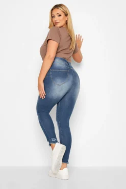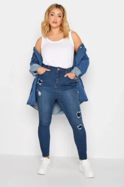 YOURS Curve Indigo Blue Rip & Repair Skinny Stretch AVA Jeans