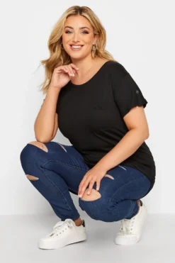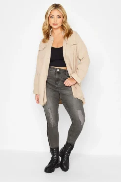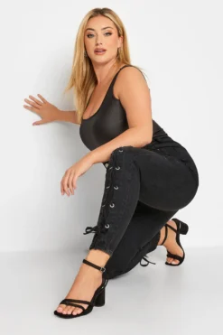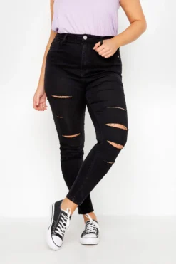 YOURS Curve Black Contrast Side Ripped Stretch Skinny AVA Jeans