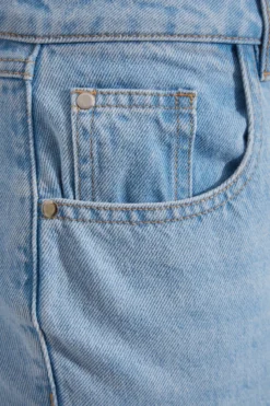YOURS Curve Light Blue Ripped Hem Stretch Straight Leg Jeans