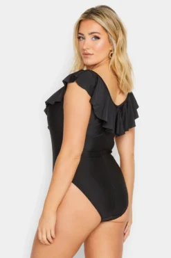YOURS Curve Black Drawstring Shoulder Plunge Tummy Control Swim Dress