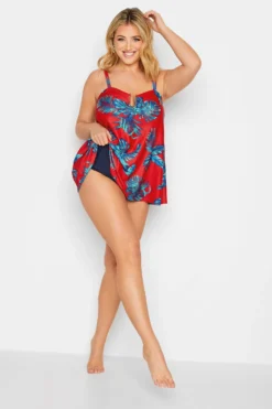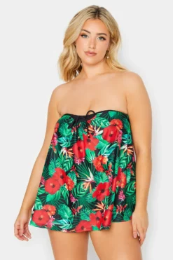 YOURS Curve Orange Mixed Tropical Print Hanky Hem Tankini Top