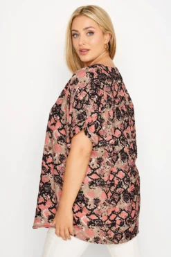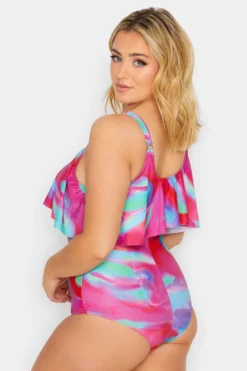 YOURS Curve Pink Swirl Print Frill Chain Tummy Control Swimsuit