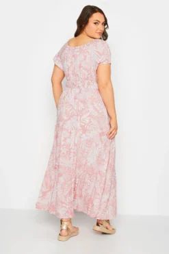 YOURS Curve Pink Retro Floral Print Hanky Hem Tummy Control Swim Dress
