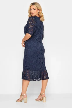 YOURS PETITE Curve Black & Blue Ditsy Print Milkmaid Midi Dress