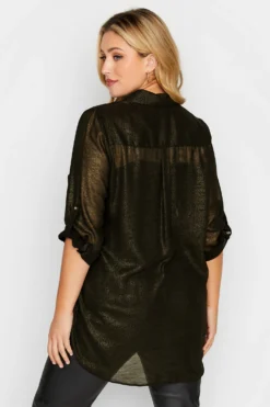 YOURS Curve Black & Navy Blue Glitter Soft Touch Layered Blouse
