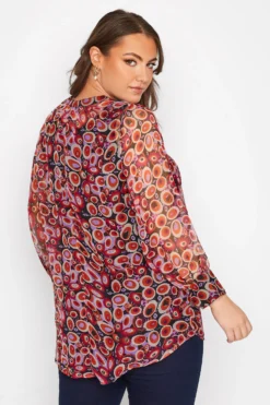 YOURS Curve Black & Red Retro Swirl Print Balloon Sleeve Shirt