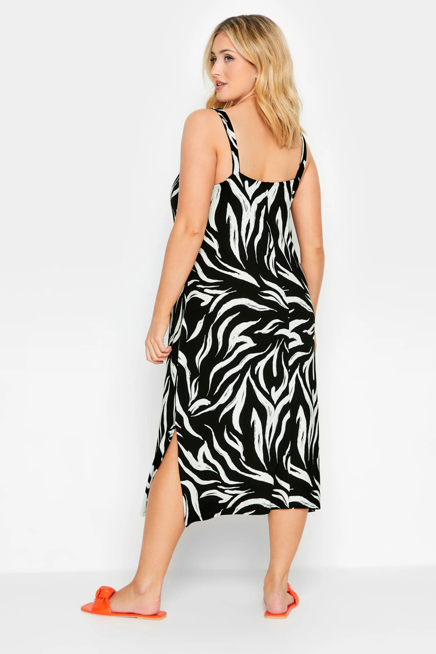 Spend a day at the beach in this new-in plus size dress. Made from a stretch jersey fabric, it features a v-neckline in a sleeveless design with ring detail straps, and side split hems complete in an animal print at a midaxi length. Wear over a swimsuit with sandals.