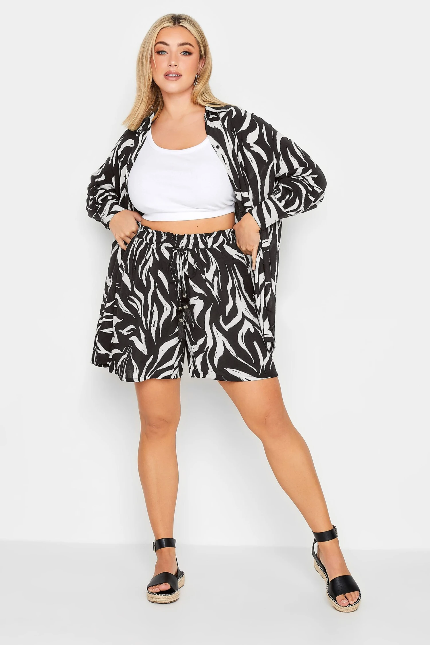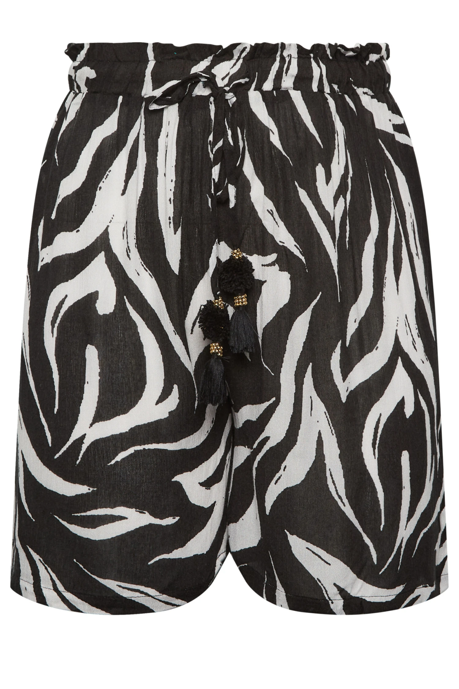 YOURS Curve Black Animal Print Tassel Beach Shorts