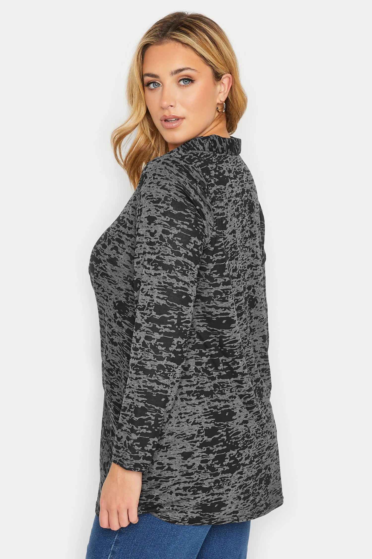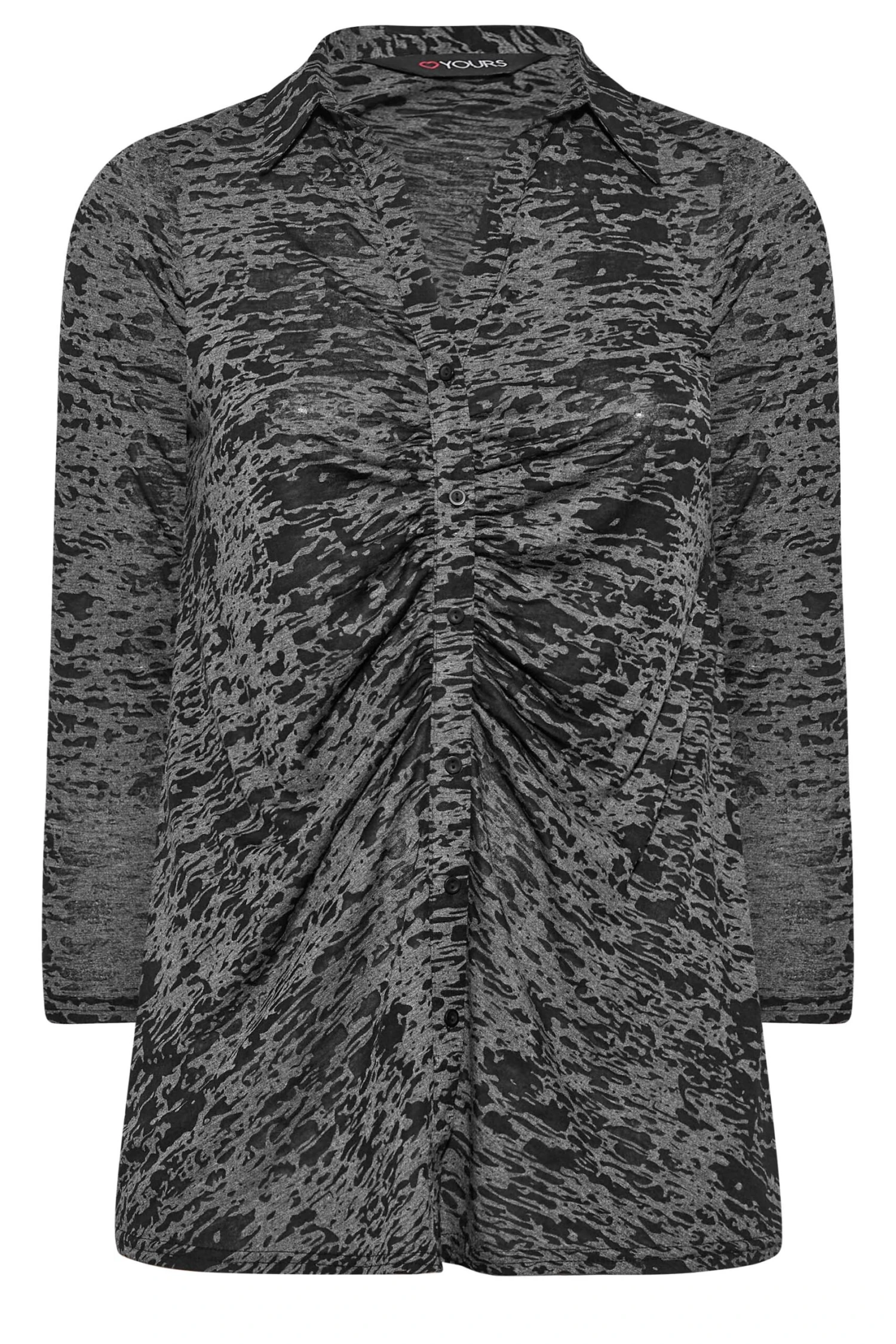 This must-have blouse is the upgrade your wardrobe has been looking for. Made from a comfortable jersey fabric, it features a ruched front and button fastenings in a burnout effect. Style with jeans and boots for an on-trend look that you can wear with confidence.