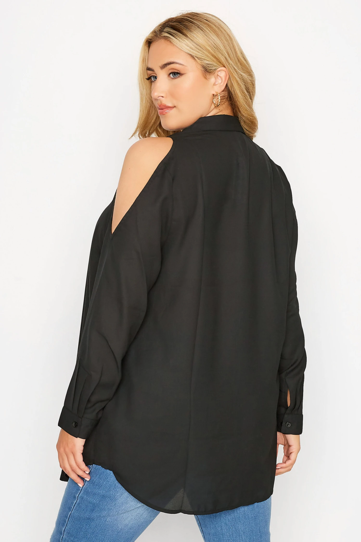 Update your wardrobe with this plus size cold shoulder shirt. Made from a soft woven fabric, it features long sleeves, button through fastenings with a classic collar and is in a cold shoulder style. Pair with your favourite jeans and heels for your next night out with the girls.