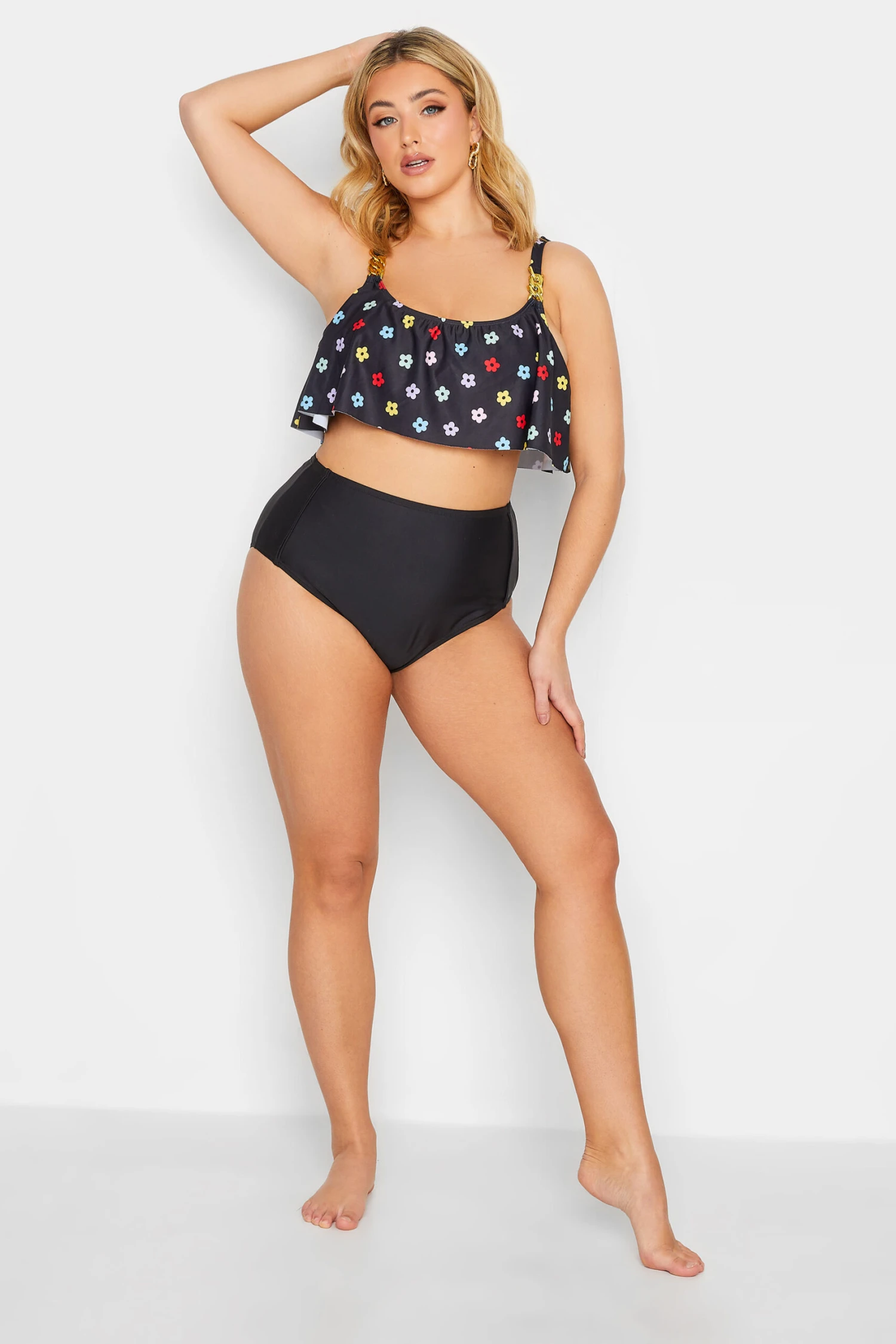 Get poolside ready in this new-in daisy print bikini top. Made from a comfortable stretch fabric, it features adjustable chain detail straps in a frill design and gives you UPF25 sun protection as well as being chlorine resistant and quick drying.