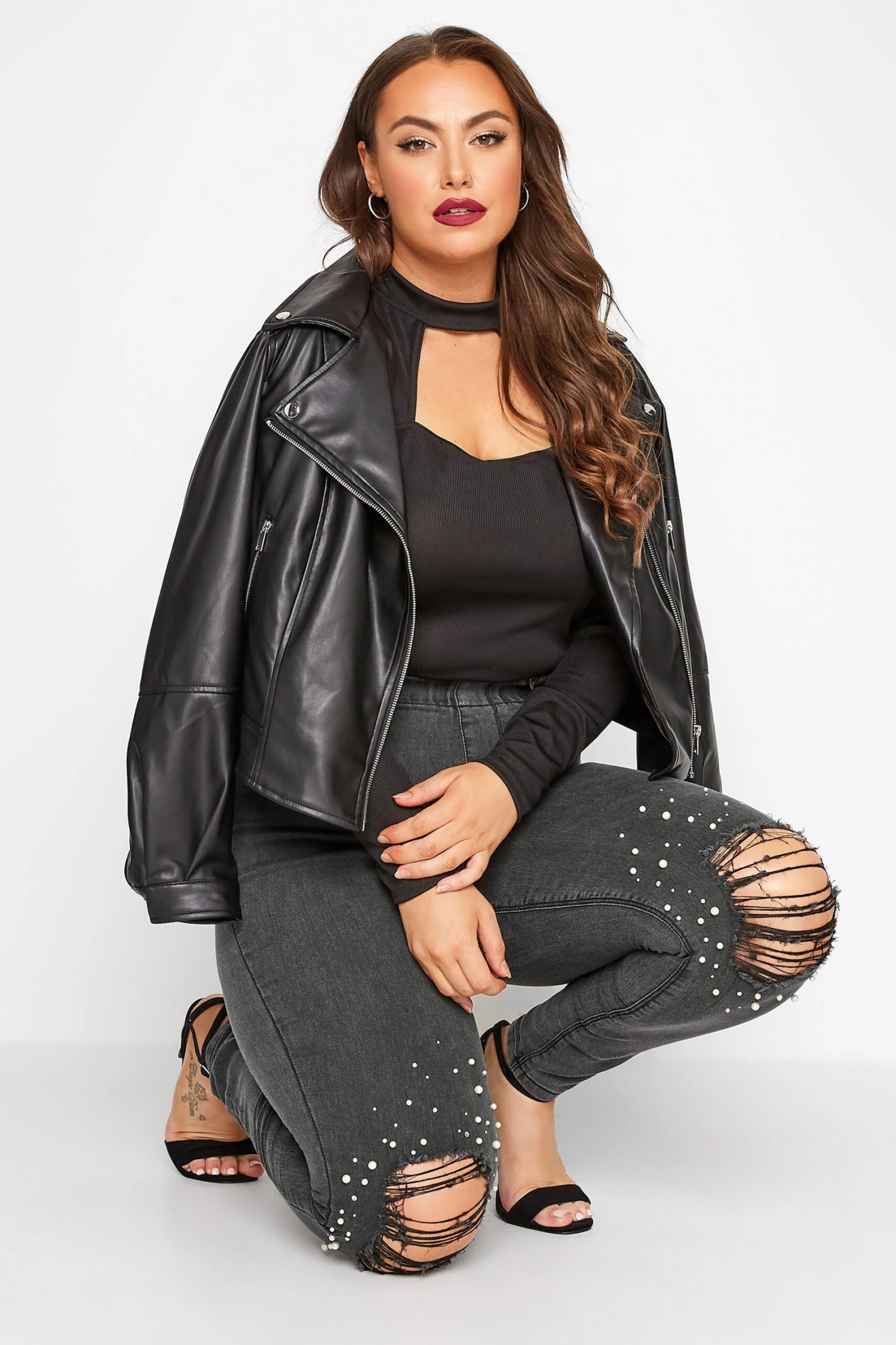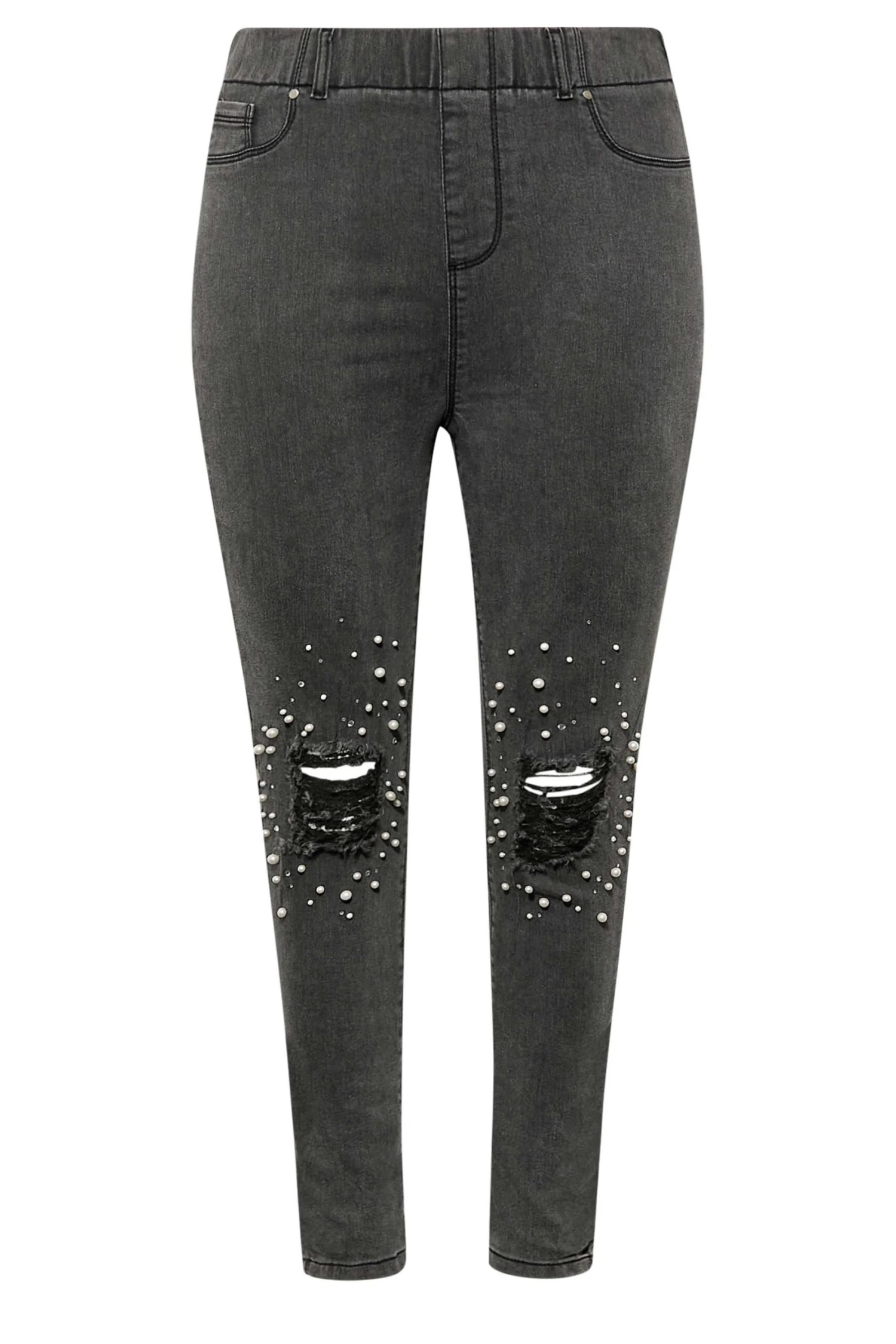 These YOURS Curve Black Embellished Knee Stretch GRACE Jeggings are the perfect addition to your wardrobe. Featuring an elasticated waist, ripped knee feature and skinny fit, these jeggings are made from a comfortable stretch fabric and are machine washable. With 73% cotton, 25% polyester and 2% elastane, these jeggings are sure to become a wardrobe staple.