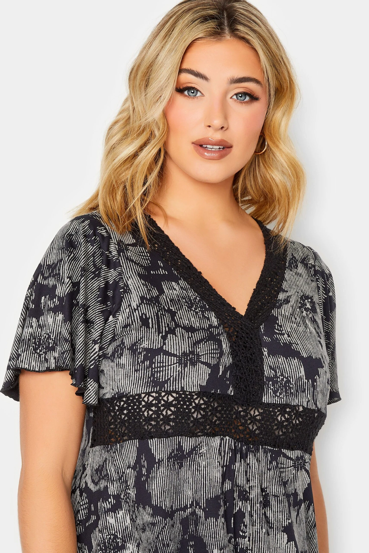 Introduce this new in floral dress to your summer wardrobe. Made from a comfortable jersey fabric, this dress features short sleeves, a lace v-neck, and a midi length. Wear with sandals to complete the look.
