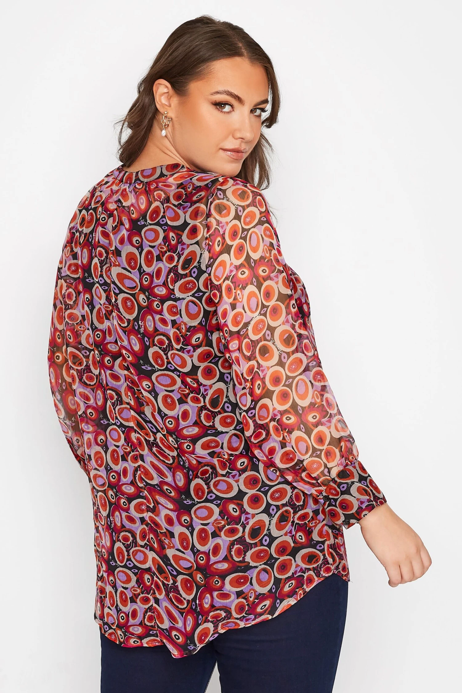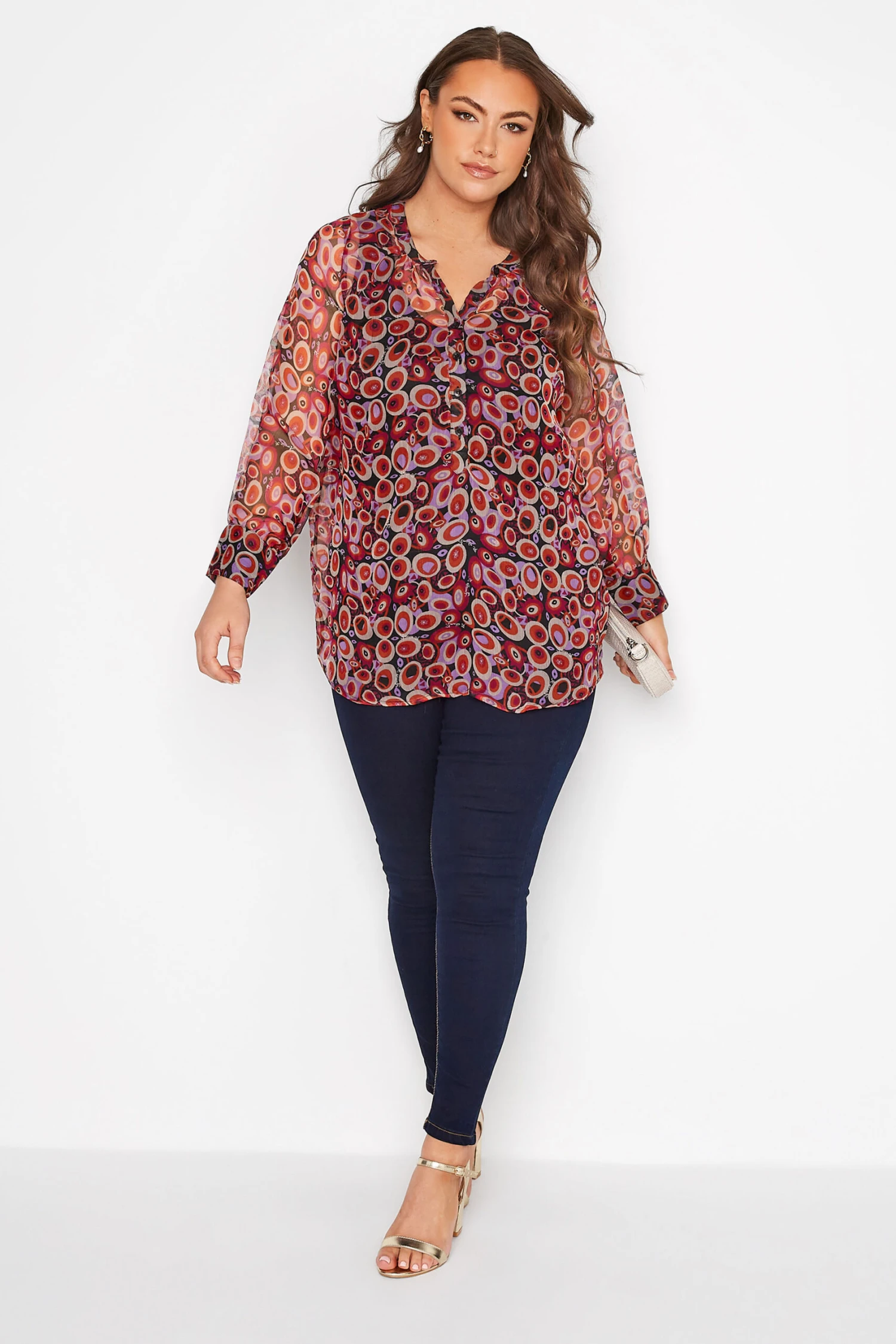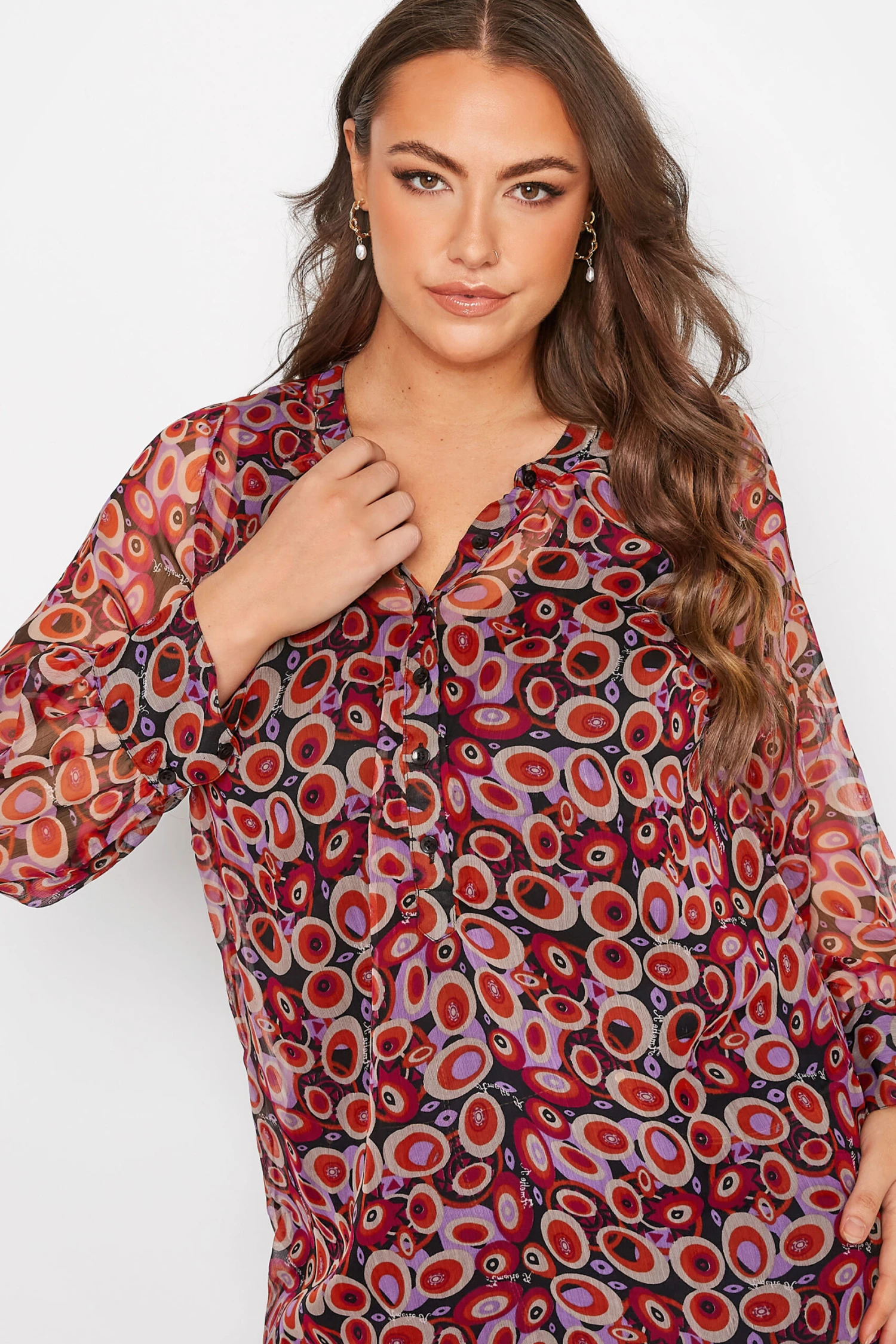 Get ready for the new season ahead with this plus size blouse. Made from a soft woven fabric, it features long sleeves with button up cuffs, a half placket front, dipped hem and an all-over retro swirl print. Style with trousers and loafers for a versatile look.
