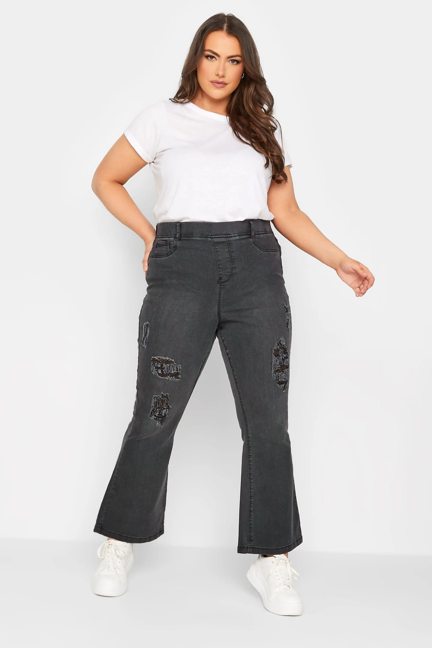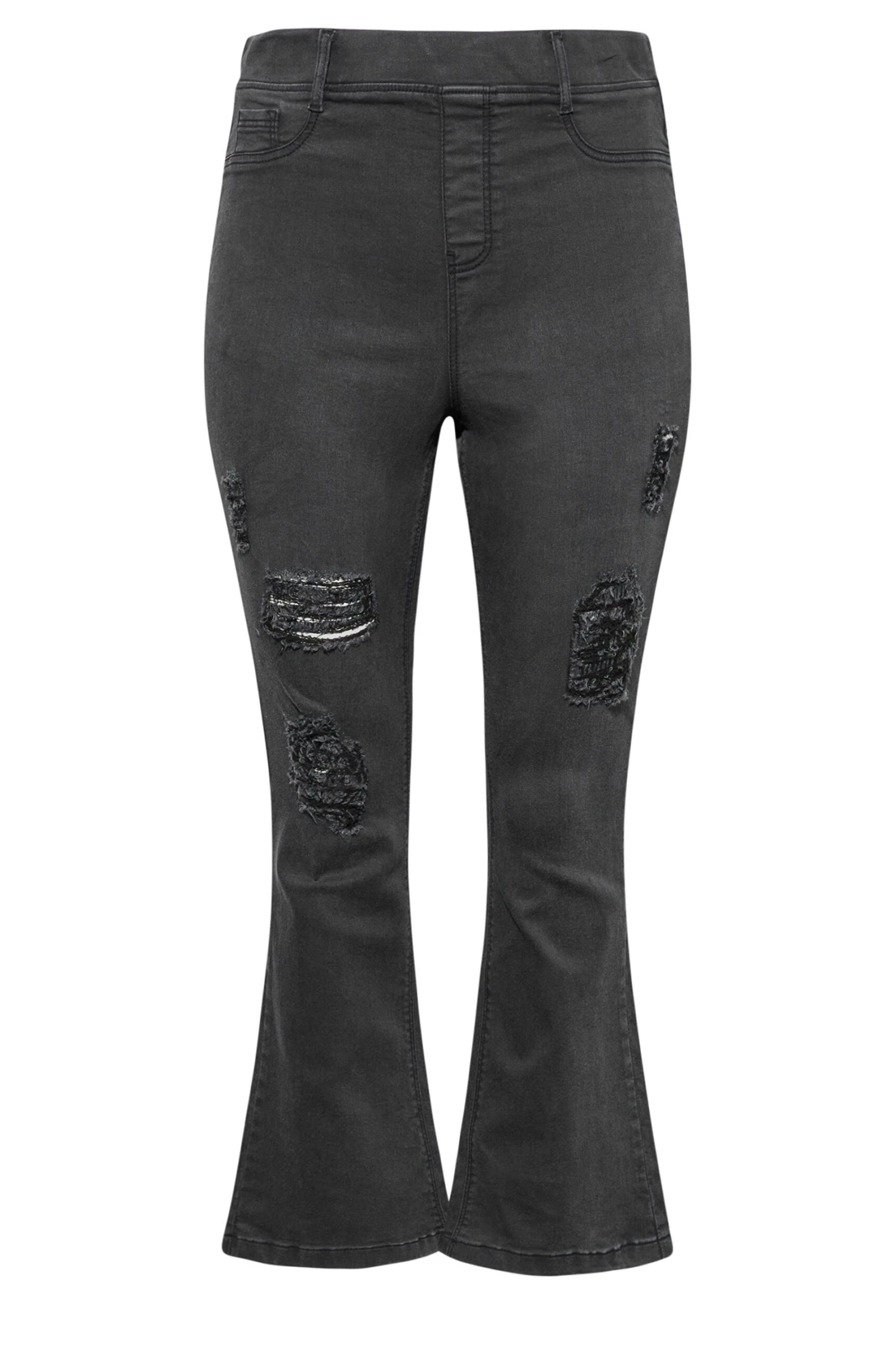 Welcome this new style of denim to your collection. Made from a stretch fabric, these plus-size HANNAH bootcut jeggings feature functional back pockets, ripped details and a washed effect in a pull-on style. Pair with a t-shirt and jeans for an everyday outfit.
