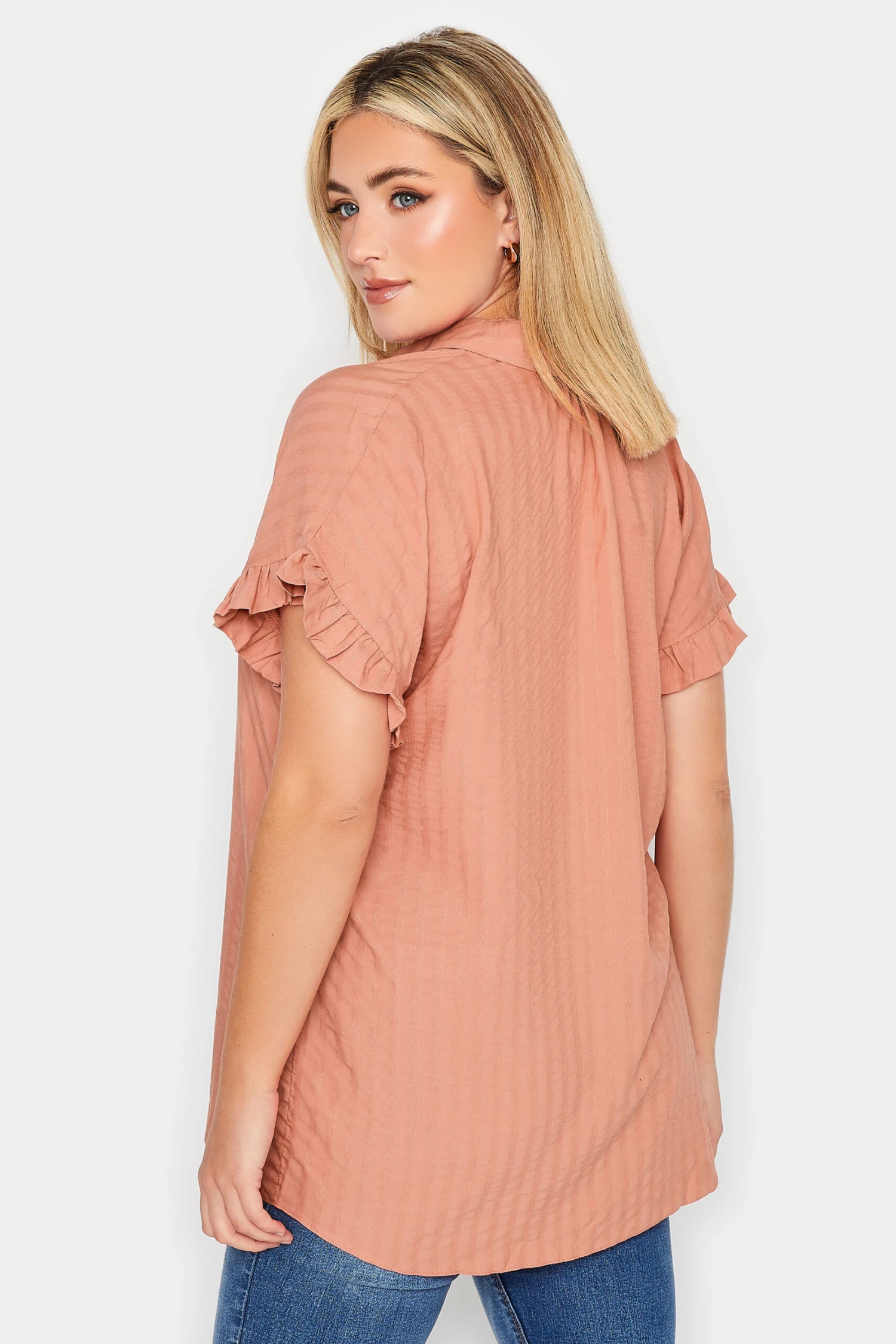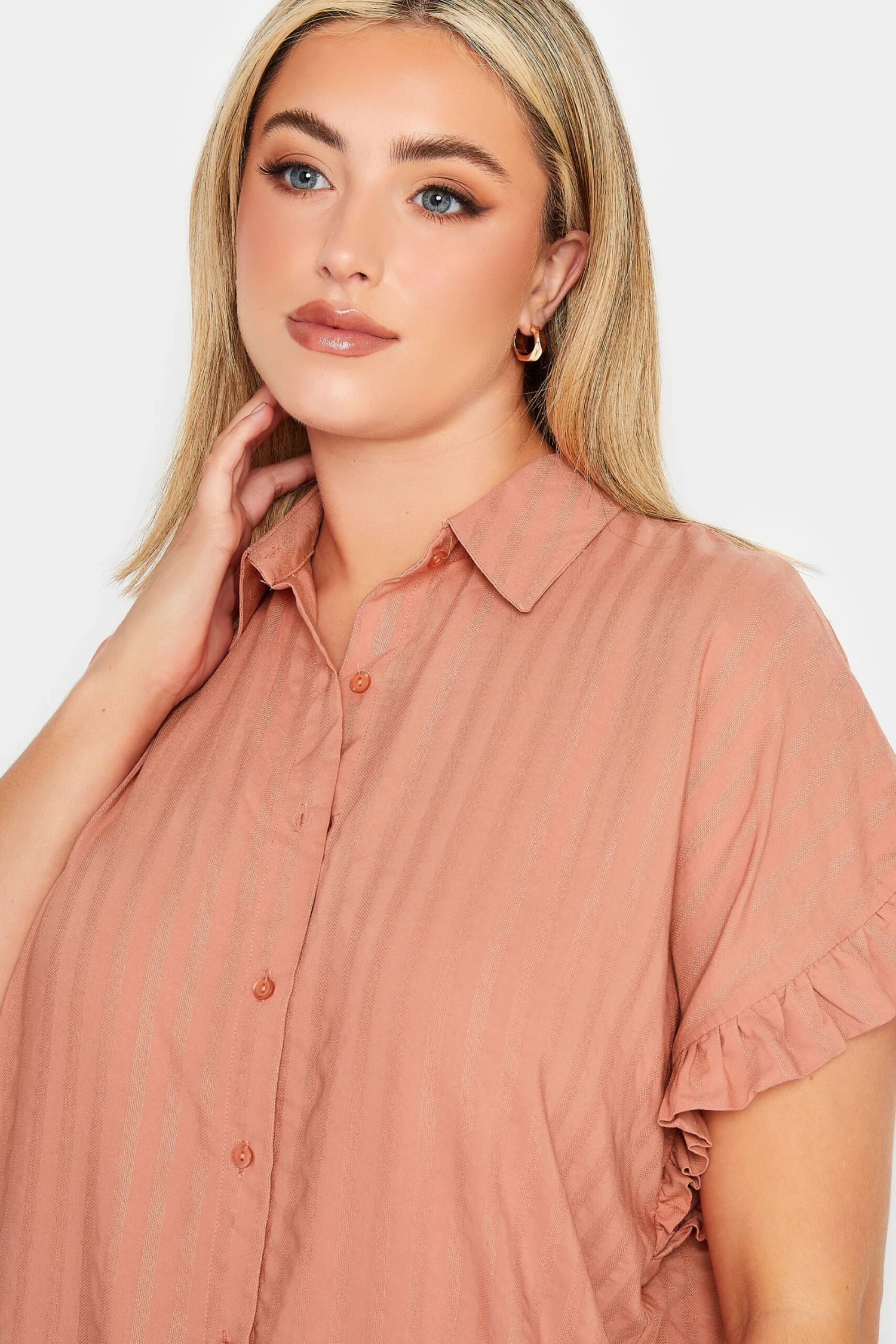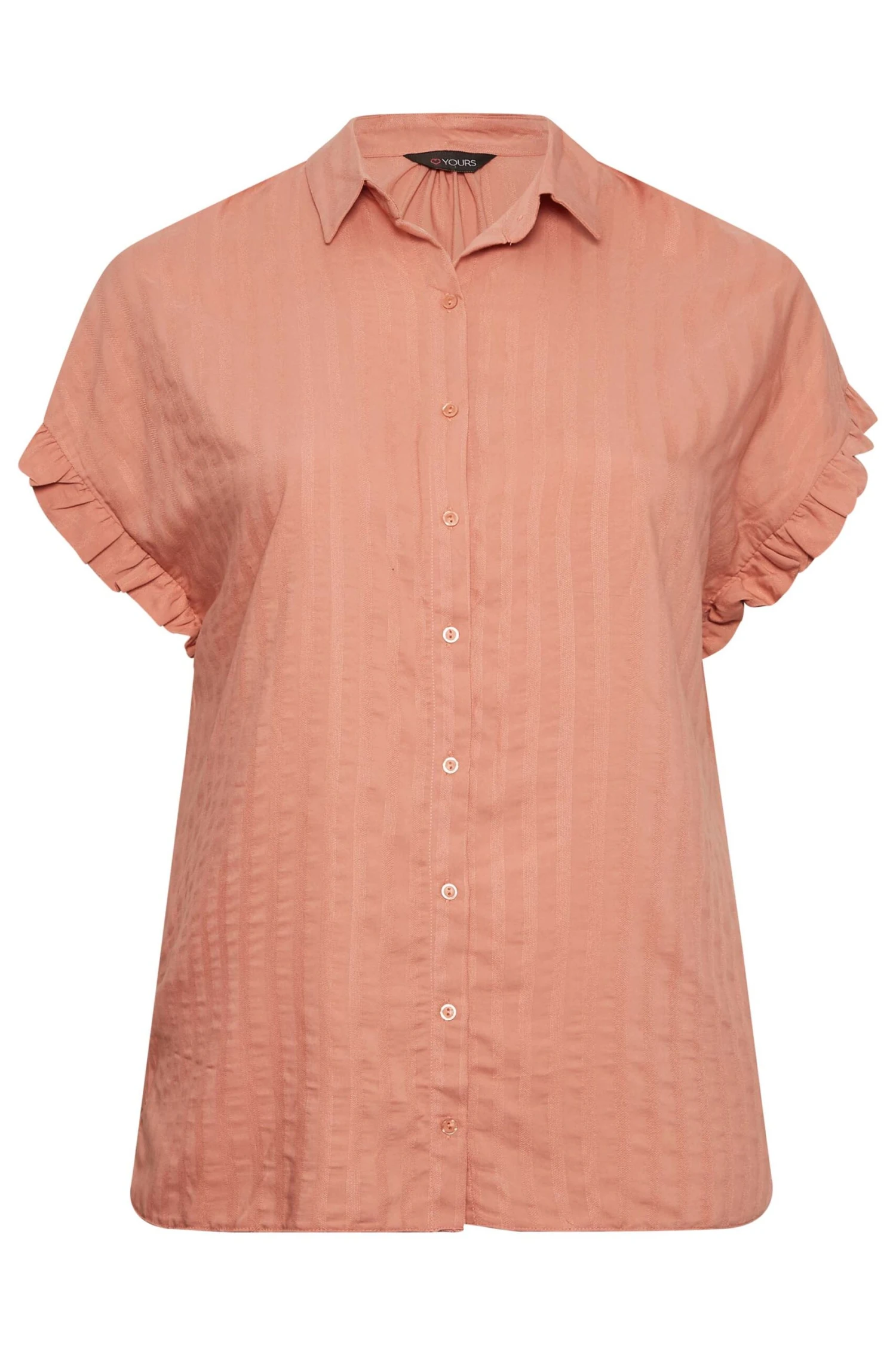 YOURS Curve Coral Orange Frill Sleeve Collared Shirt