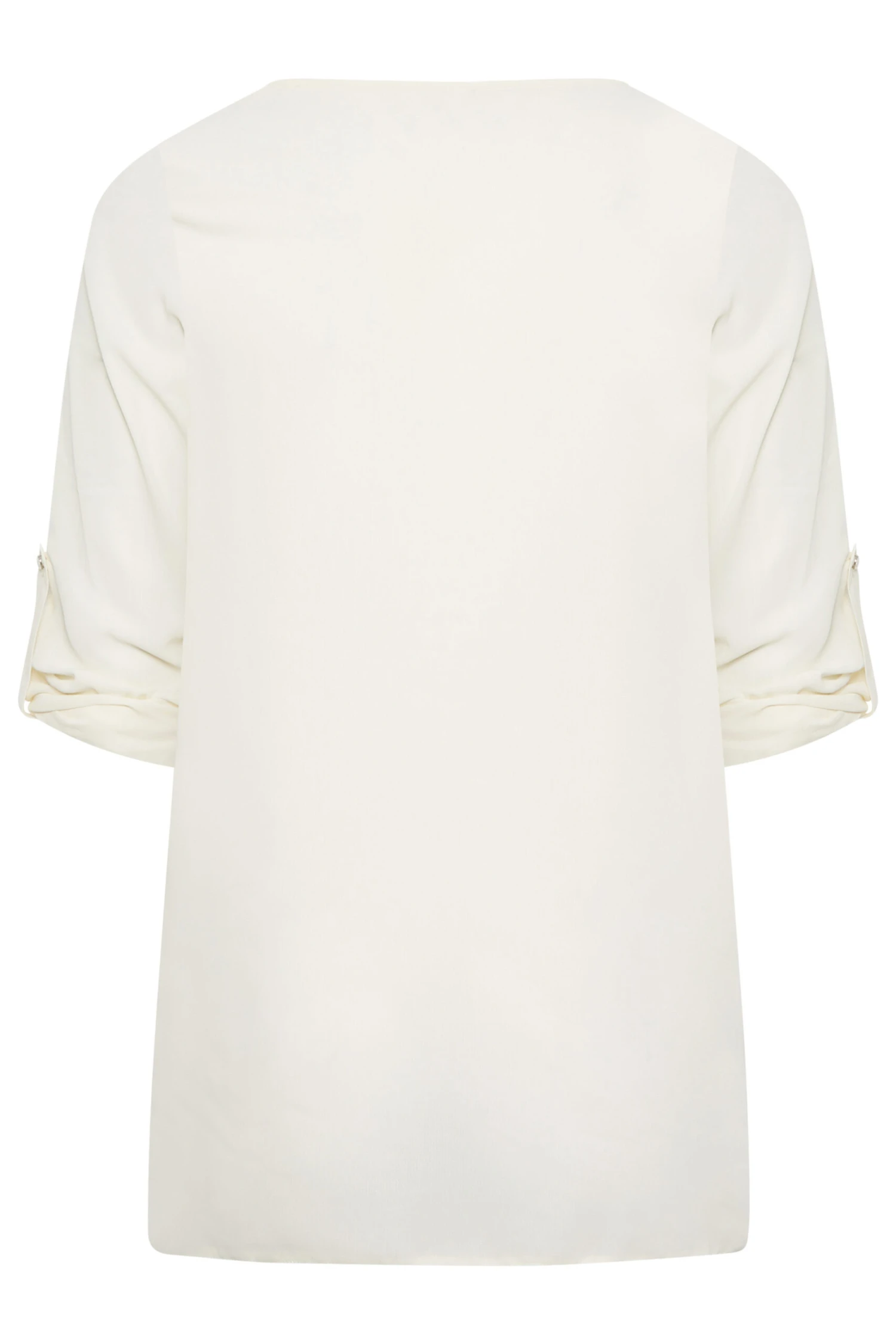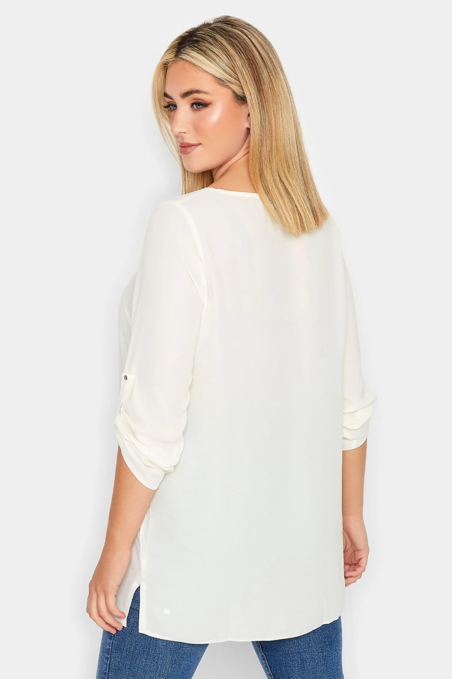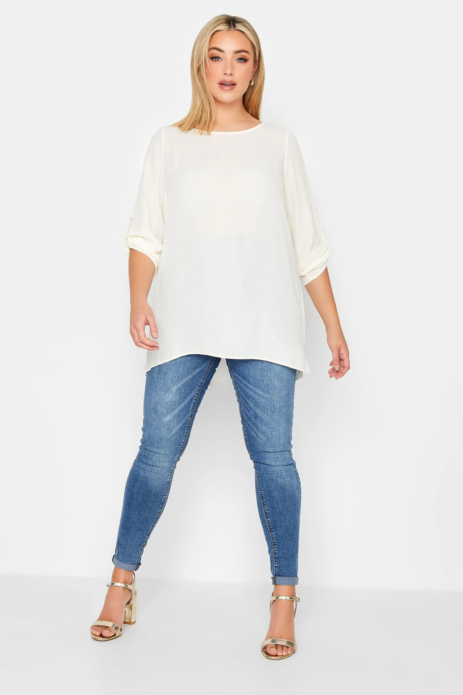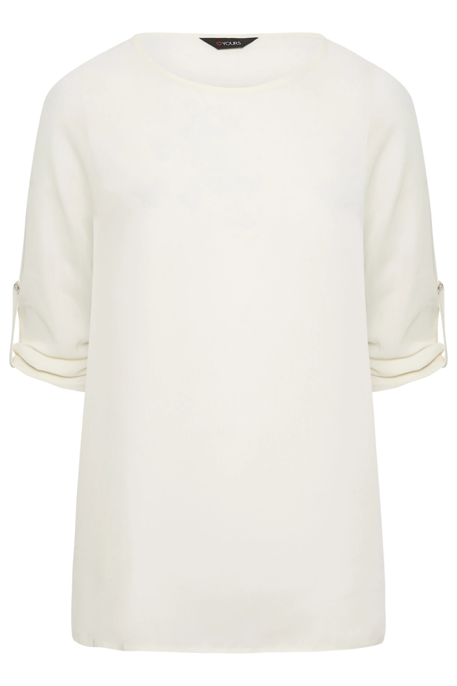 Step into the office in this new-in plus size blouse. Made from a comfortable woven fabric, it features a scoop neckline with a tab sleeve detail and a side split hem. Complete the look with jeans and heels to take you from nine-to-wine.