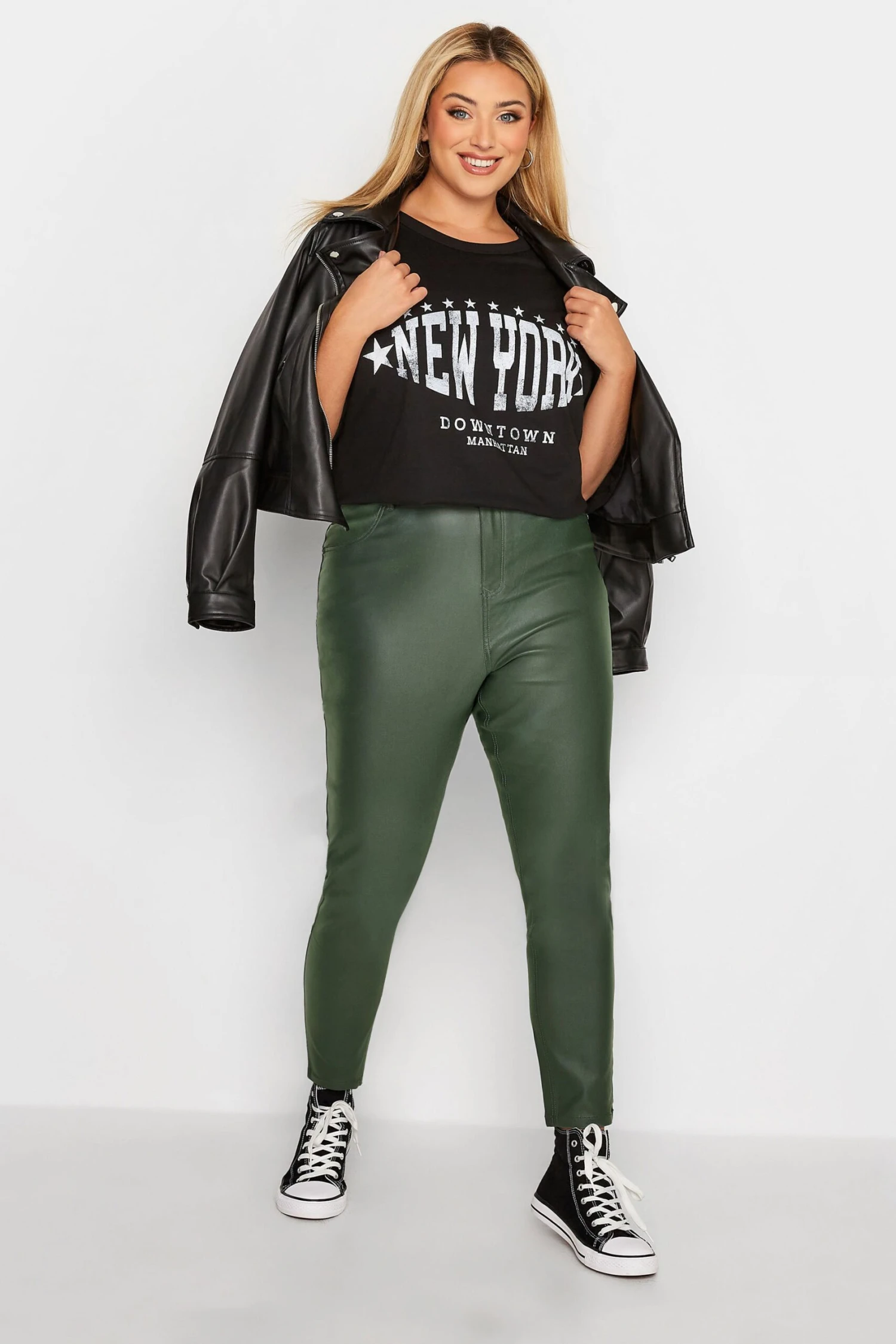 These YOURS Curve Green Coated Skinny Stretch AVA Jeans are the perfect addition to your wardrobe. Featuring a button and zip fastening, belt loops, two back pockets, and a skinny fit, these jeans are made from a stretch fabric for ultimate comfort. With a coated finish, these jeans are made from 74% nylon, 22% rayon, and 4% elastane and are machine washable.