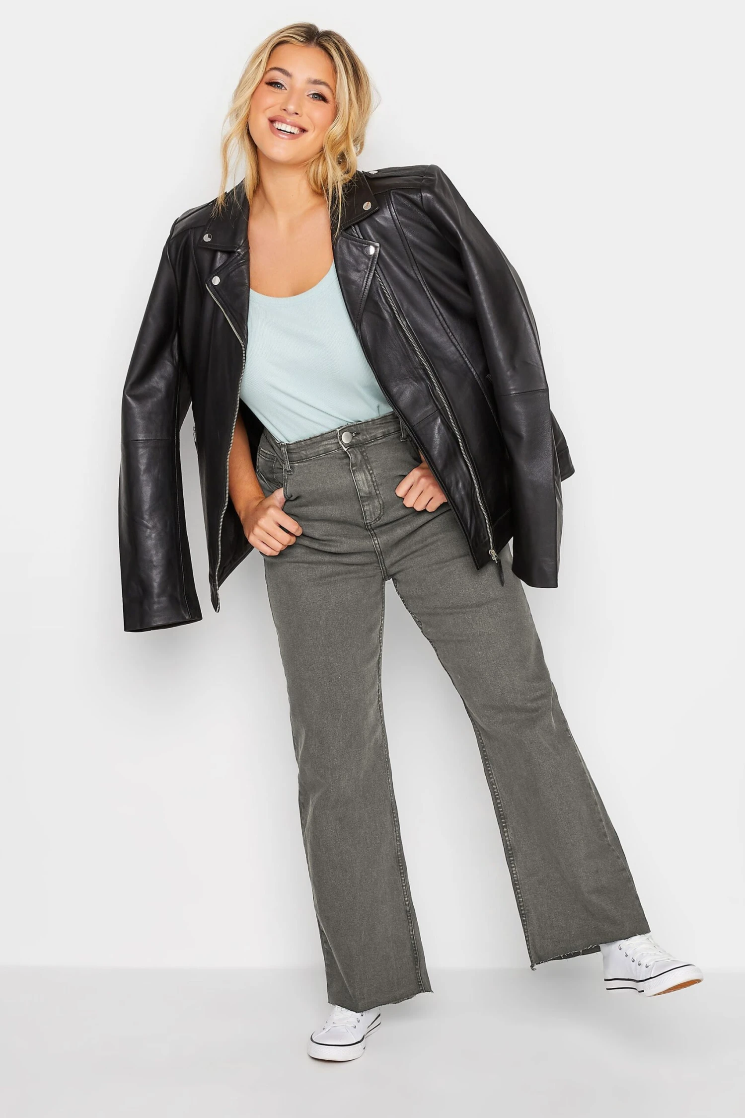 Freshen up your denim for the new season. These plus size wide leg jeans feature a flattering high-waisted style with five functional pockets and belt loops, finished with frayed hems in a stretch fabric. Compliment with a denim jacket and trainers for fashionable everyday wear.