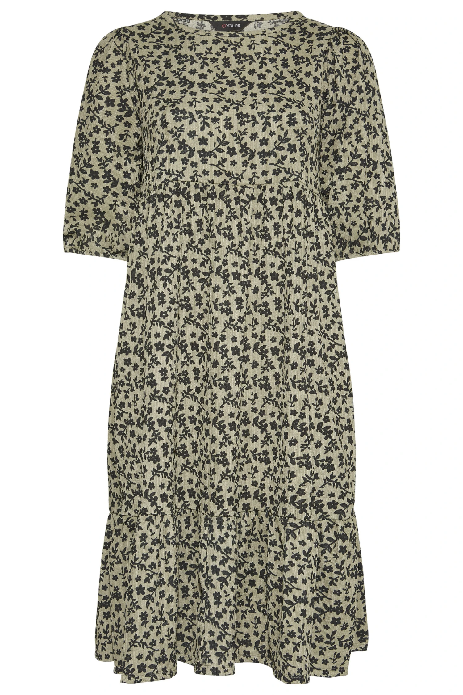 YOURS Curve Khaki Green Floral Print Tiered Midi Dress