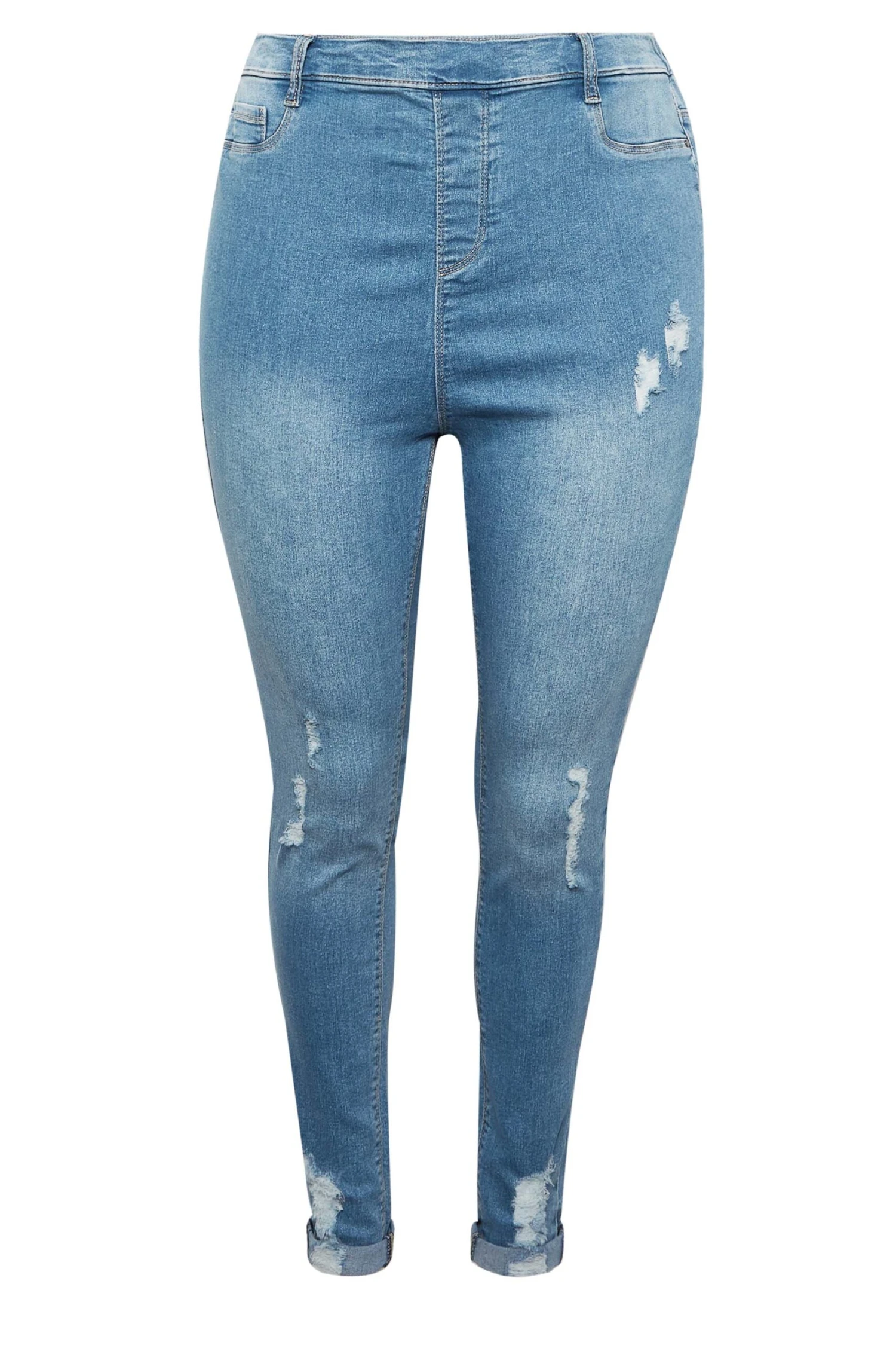 New season, new denim! Update your wardrobe with these new-in plus size GRACE jeggings. Made from a stretch fabric, these jeggings feature a ripped design and a high waist. Wear with a tee and trainers for a comfortable everyday look!