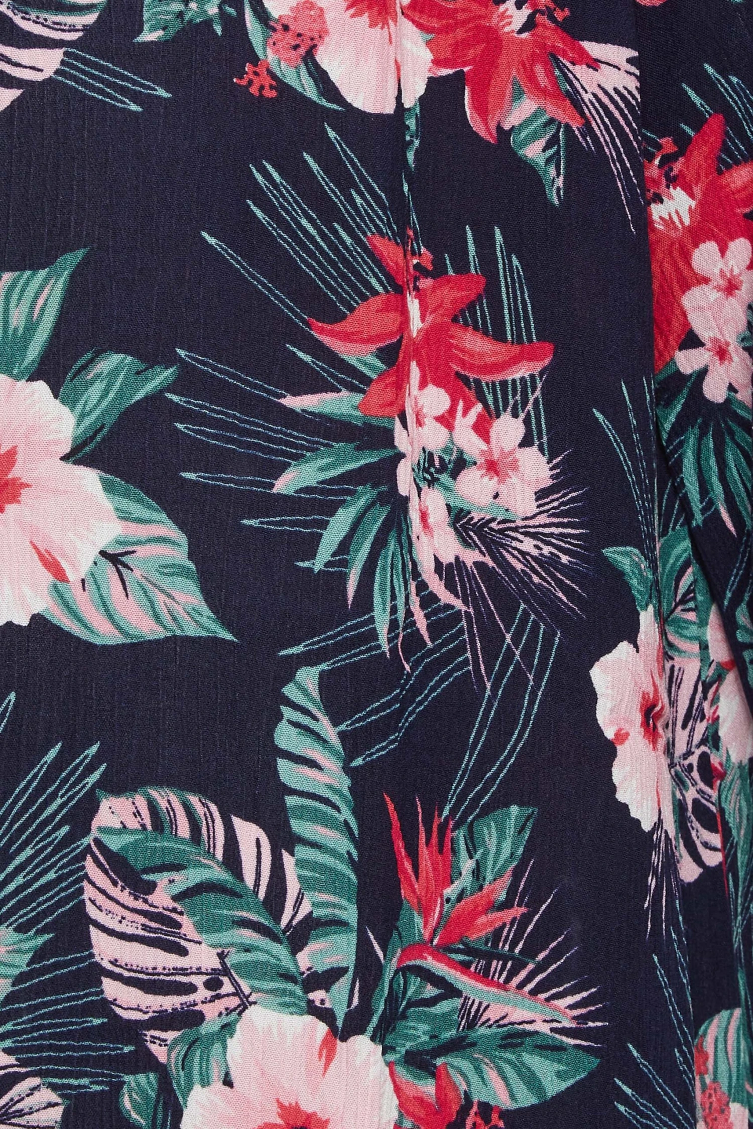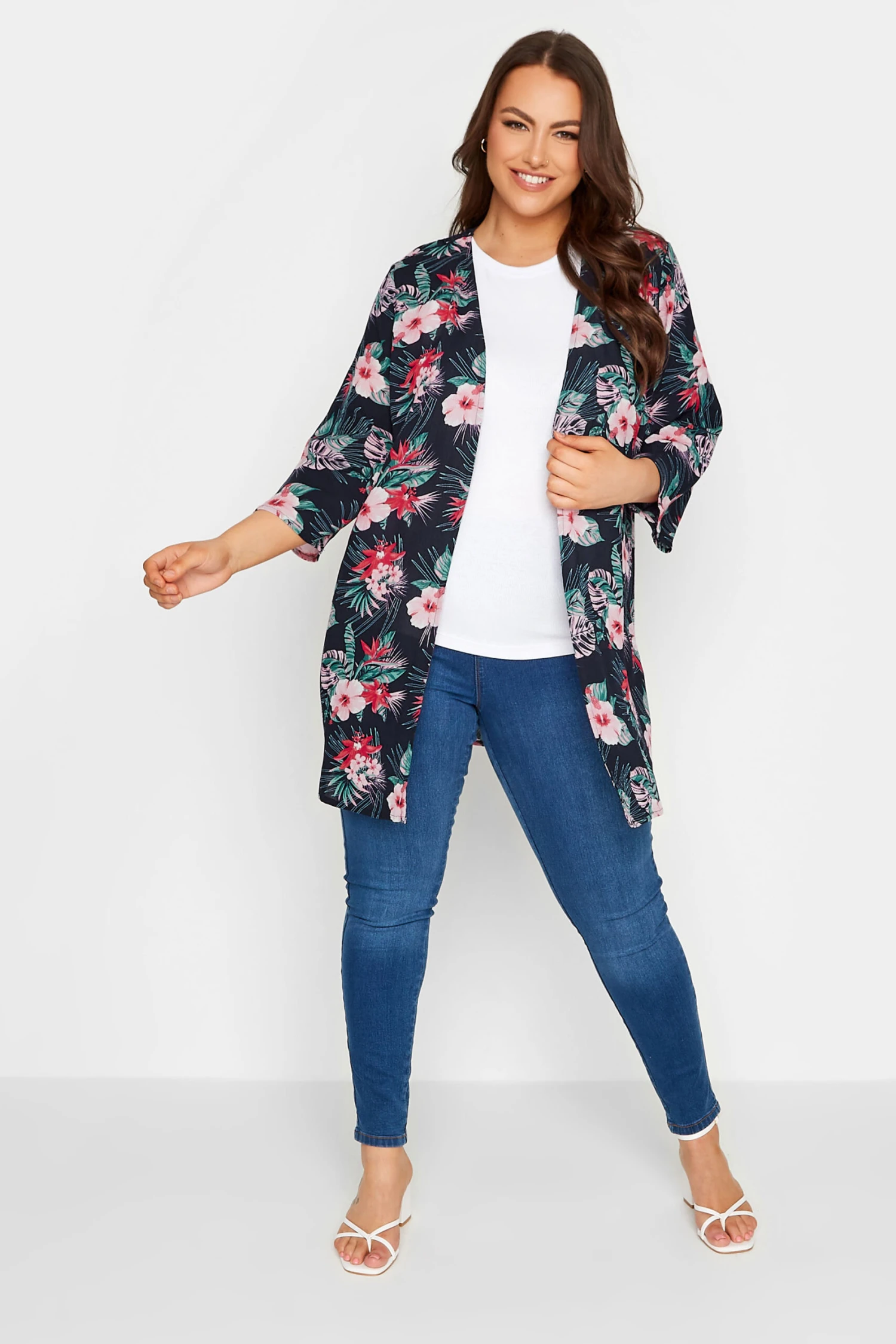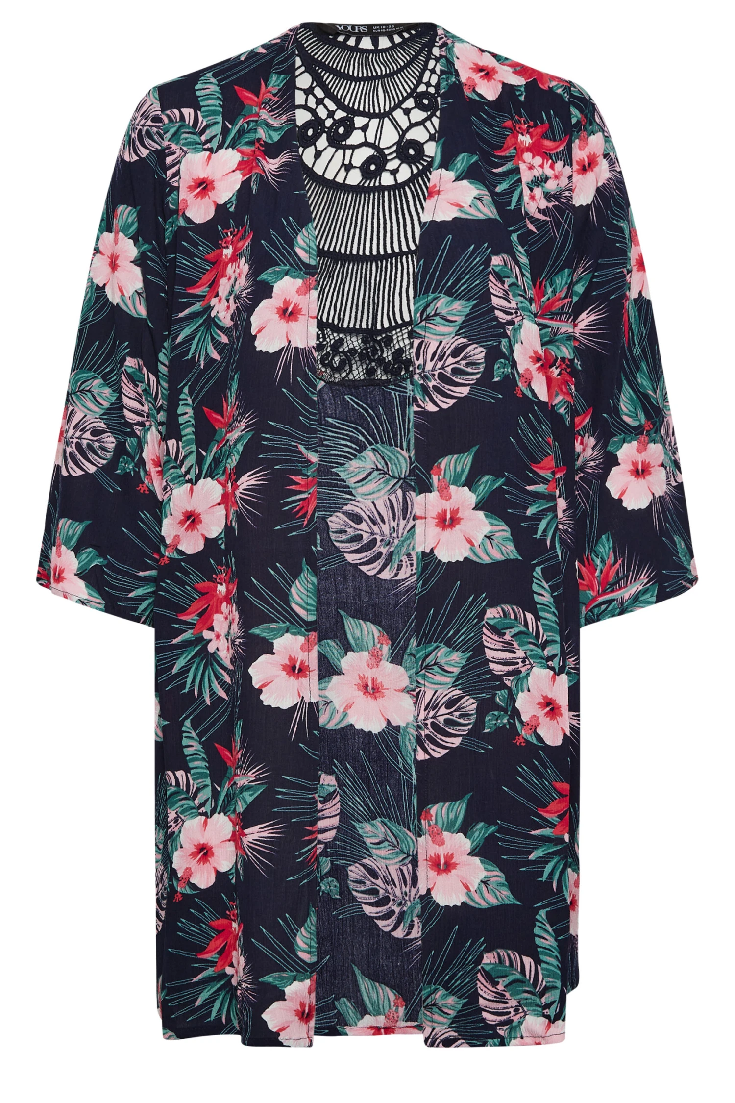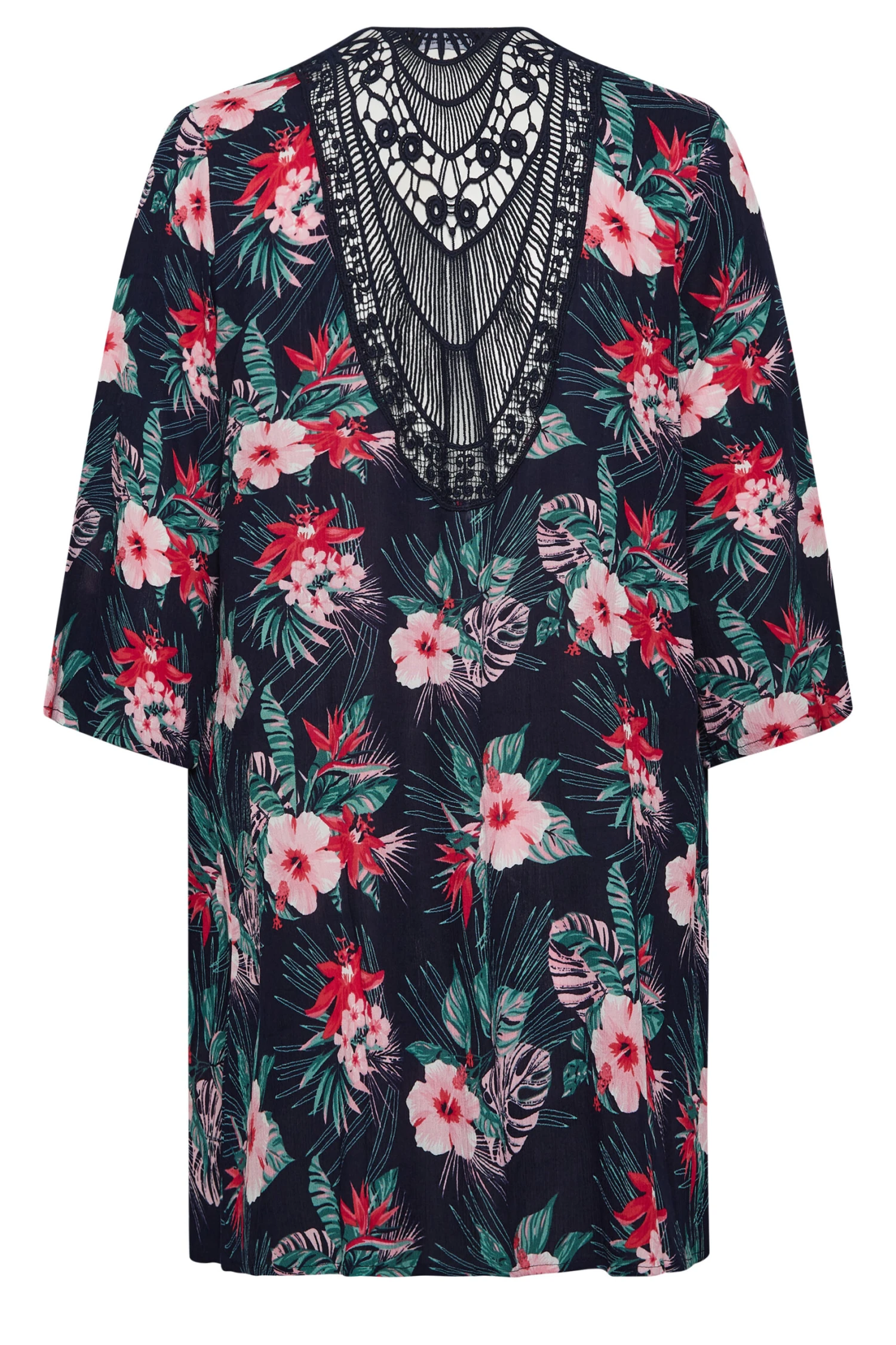 This new-in kimono is the perfect piece for the beach or poolside. Made from comfortable woven fabric, it features a crochet back design in a tropical print and 3/4 length sleeves. Layer over your favourite swimwear for an effortless and stylish look.