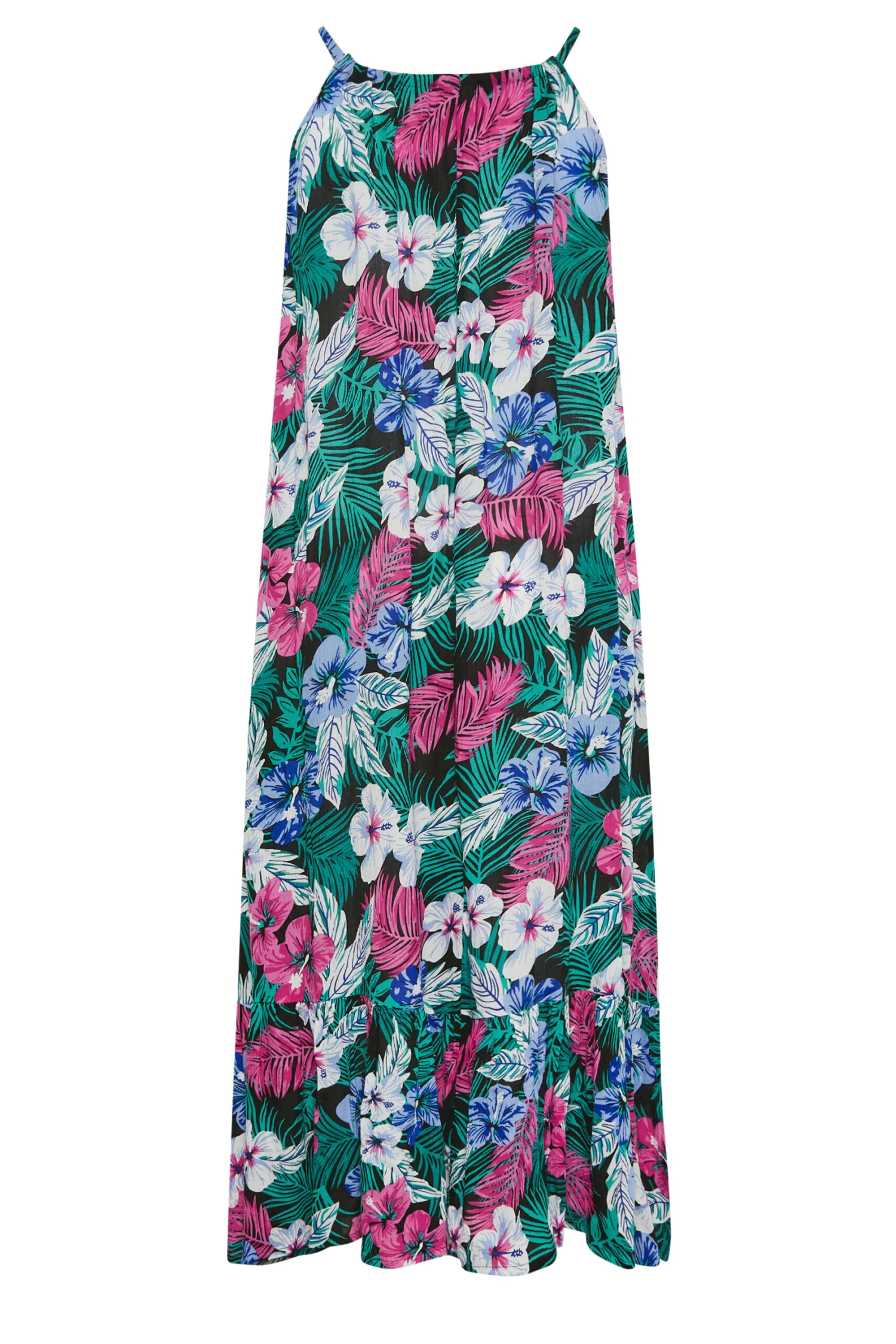 Update your holiday wardrobe with the new maxi dress! This dress is made from a comfortable woven fabric with a tropical print, a scoop neckline, and a keyhole detail. Style with platform sandals for a look you can wear on repeat this season.