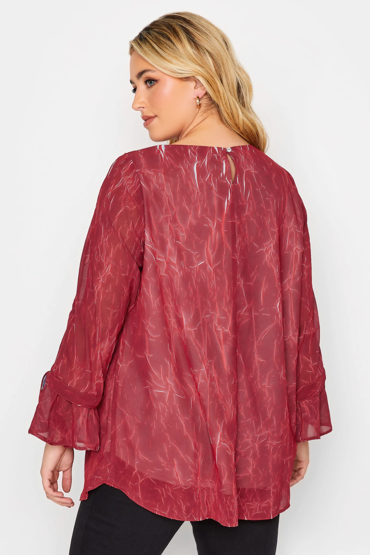 Make some room in your wardrobe for this new-in top! Made from a comfortable woven fabric, this top features sheer long bell sleeves, and a scoop neckline. Style with jeans and trainers for a stylish everyday look.