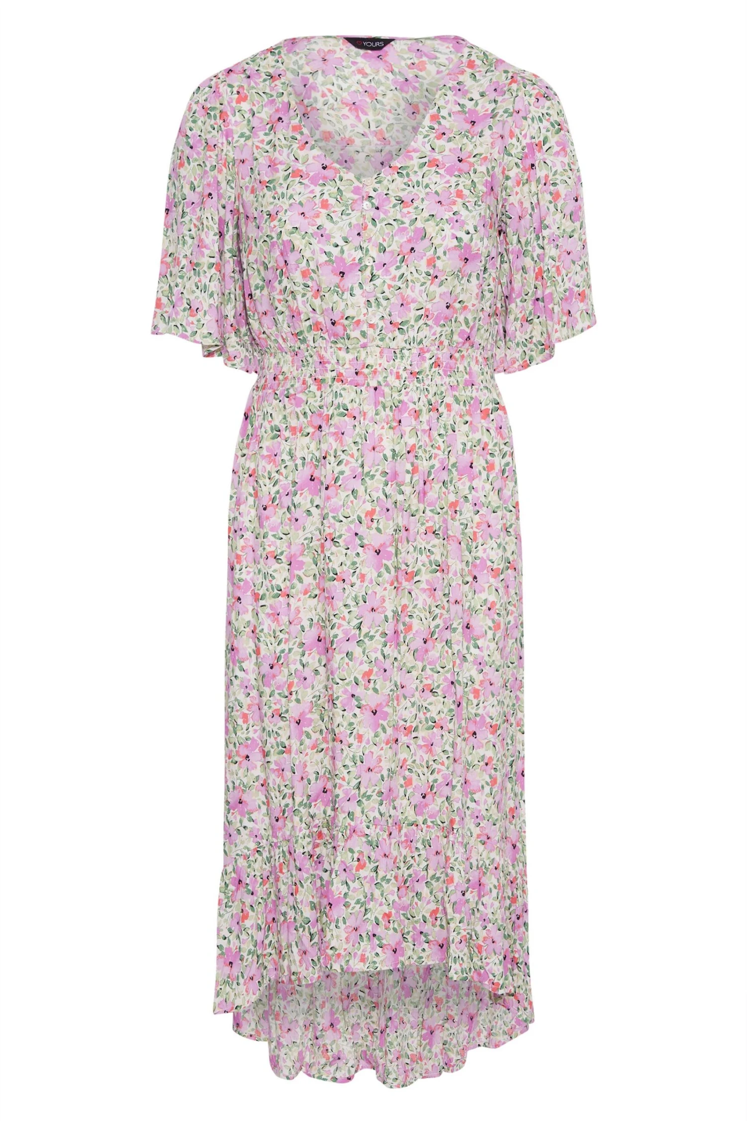 Refresh your dresses collection this summer with this plus size wedding guest dress. Made from a soft woven fabric, this plus size dress features a floral print, a v-neckline and a high low hemline. Partner with your favourite heels for a look you can wear with confidence.
