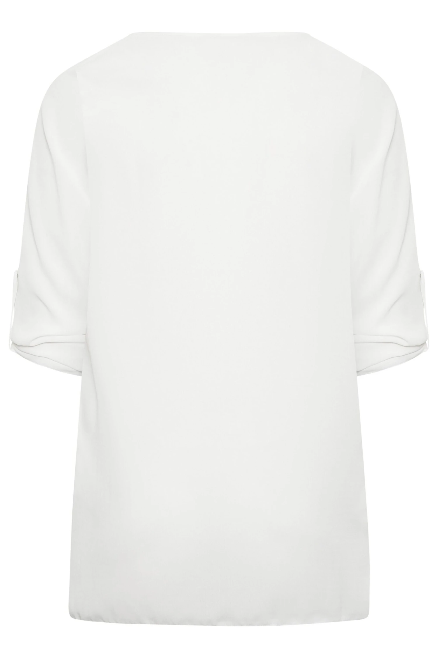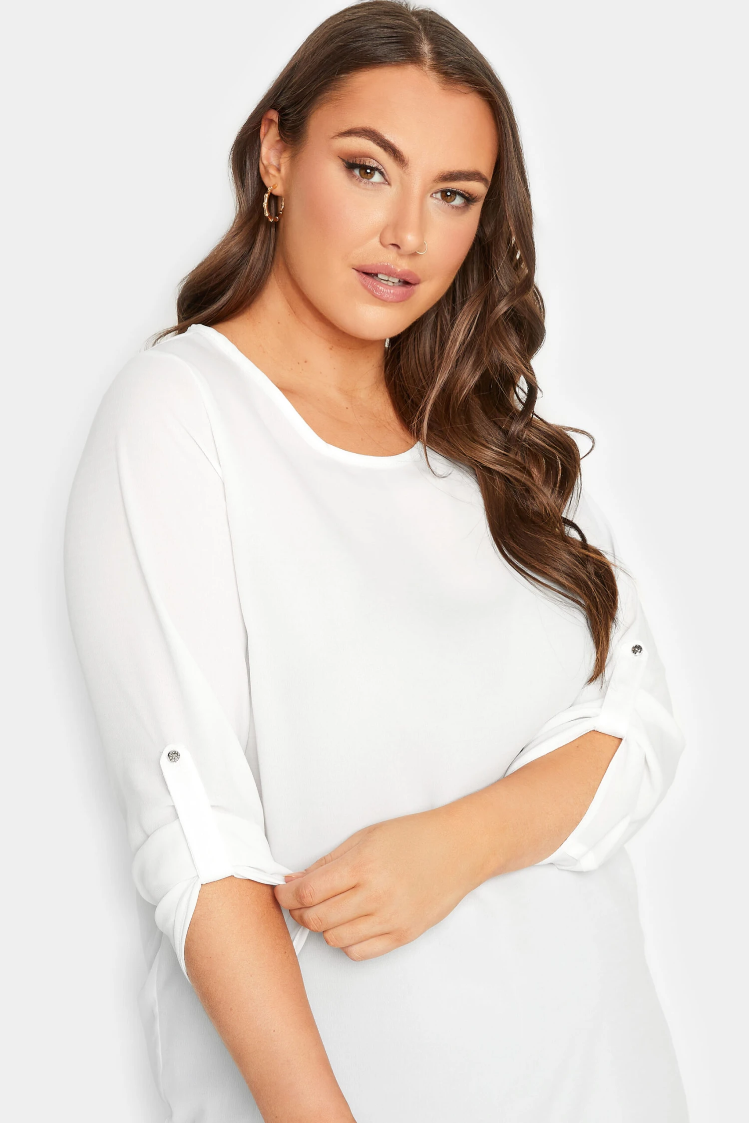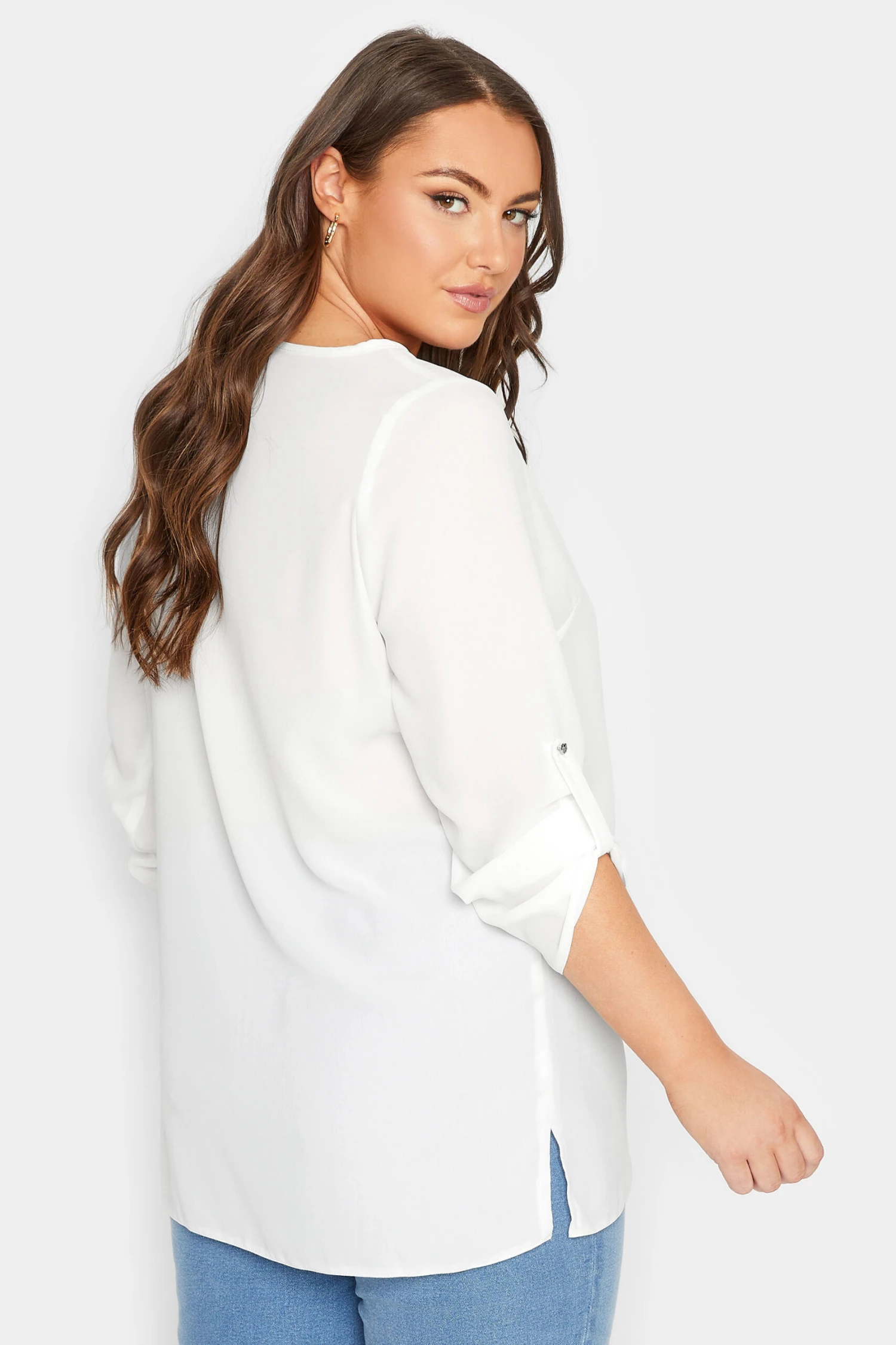YOURS Curve White Tab Sleeve Blouse - Image 4