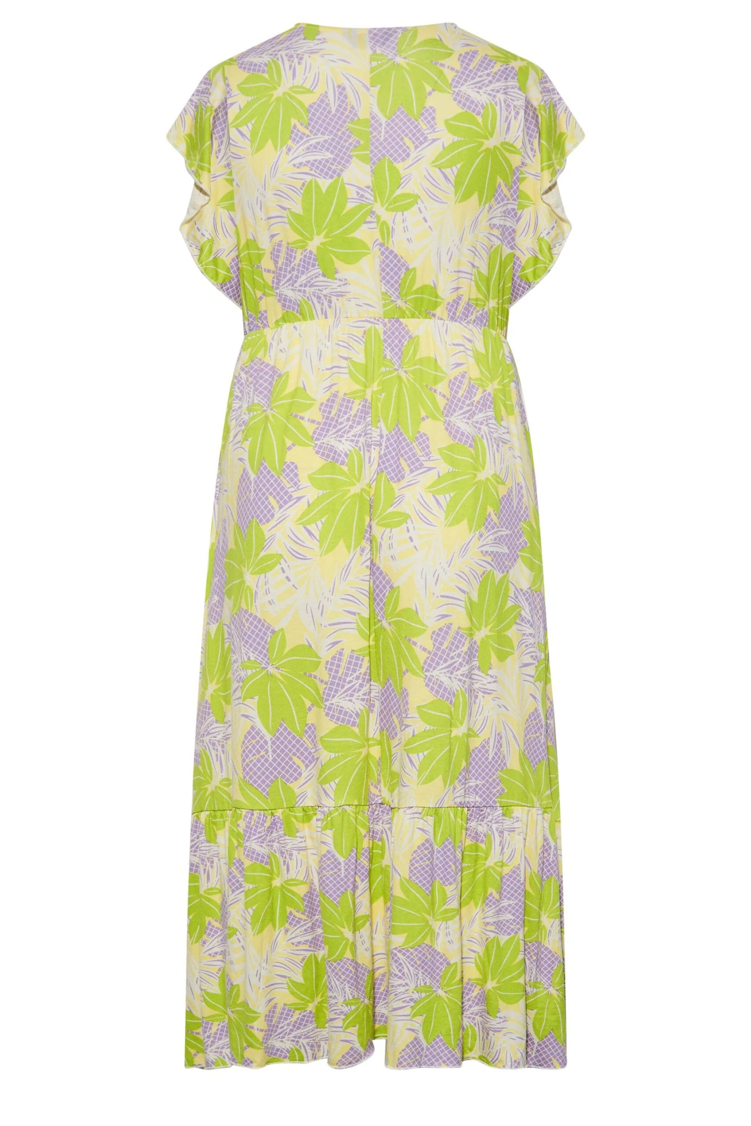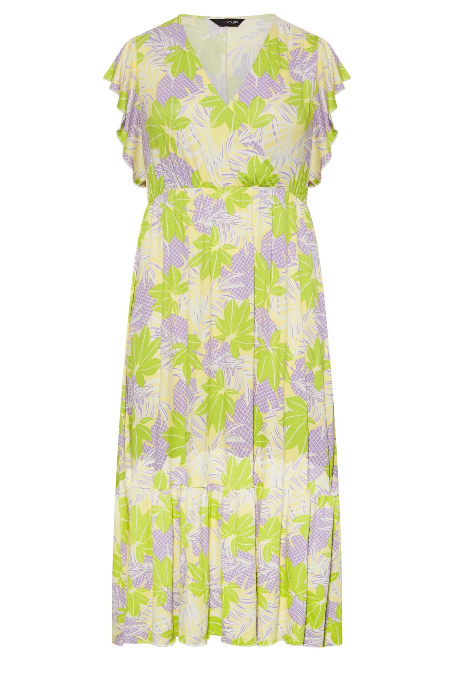 Add some bright prints to your wardrobe with this plus size midaxi dress. Made from a comfortable jersey fabric, it features short frill flared sleeves, a wrap v-neckline, an elasticated waistband and is complete in a tiered design. Pair with trainers and a denim jacket for a casual summer outfit.