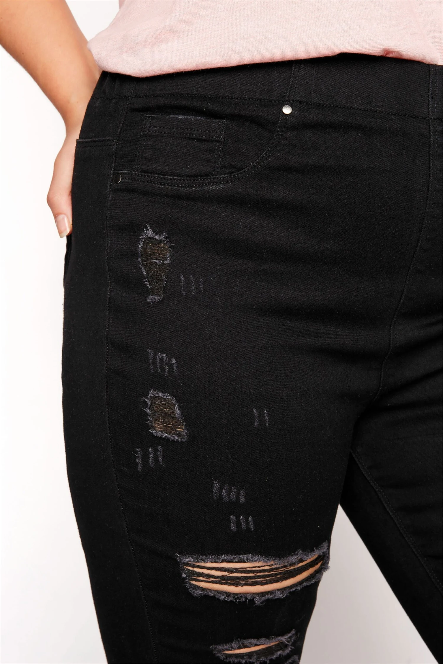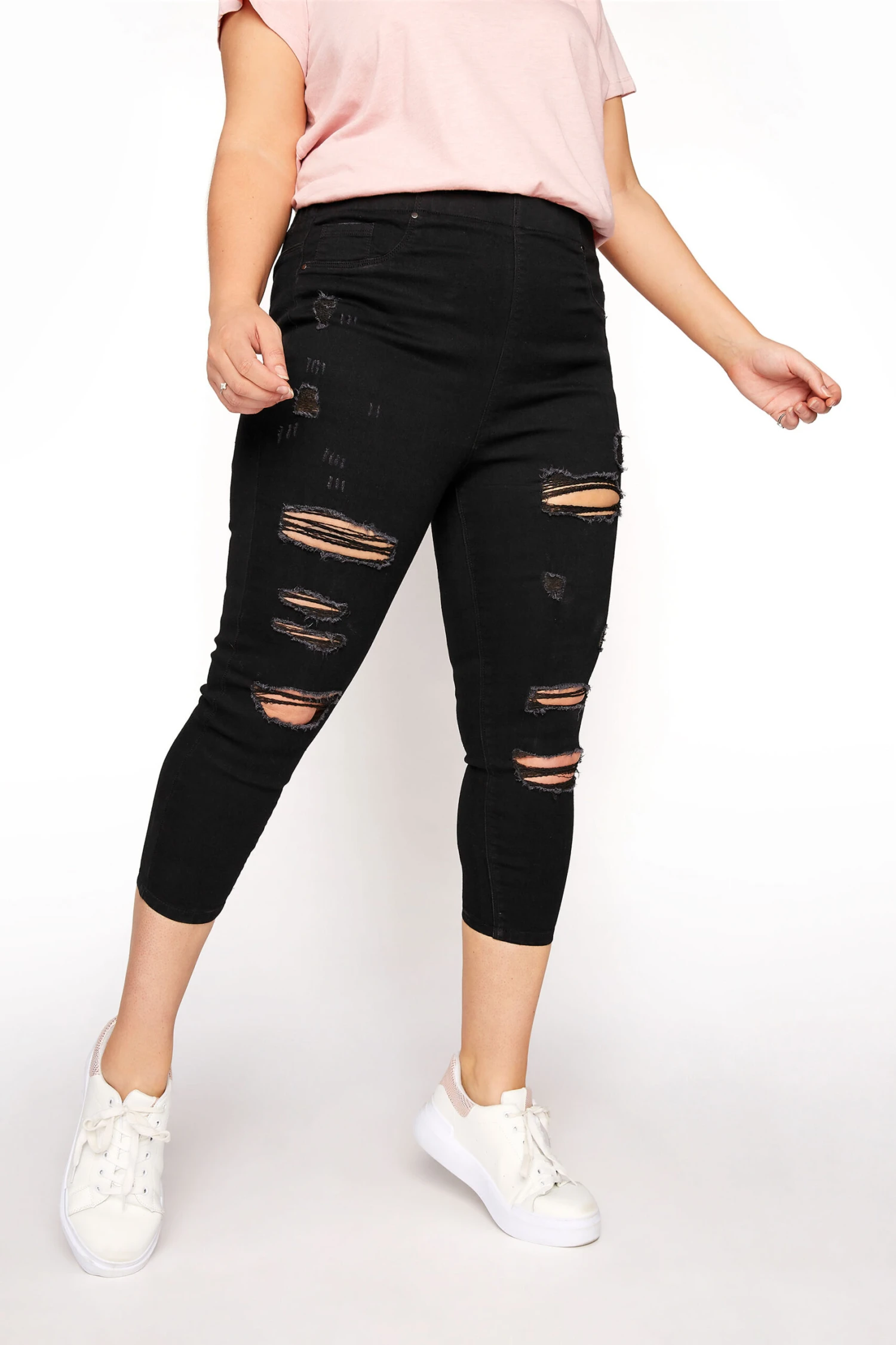 These Curve Black Extreme Ripped Stretch Cropped JENNY Jeggings from our ‘Yours For Good’ range are the perfect addition to your wardrobe. Crafted from a stretch denim fabric with an elasticated waistband, these jeggings feature ripped detail and two functional back pockets. Made from 77% cotton, 20% polyester and 3% elastane, these jeggings are machine washable.