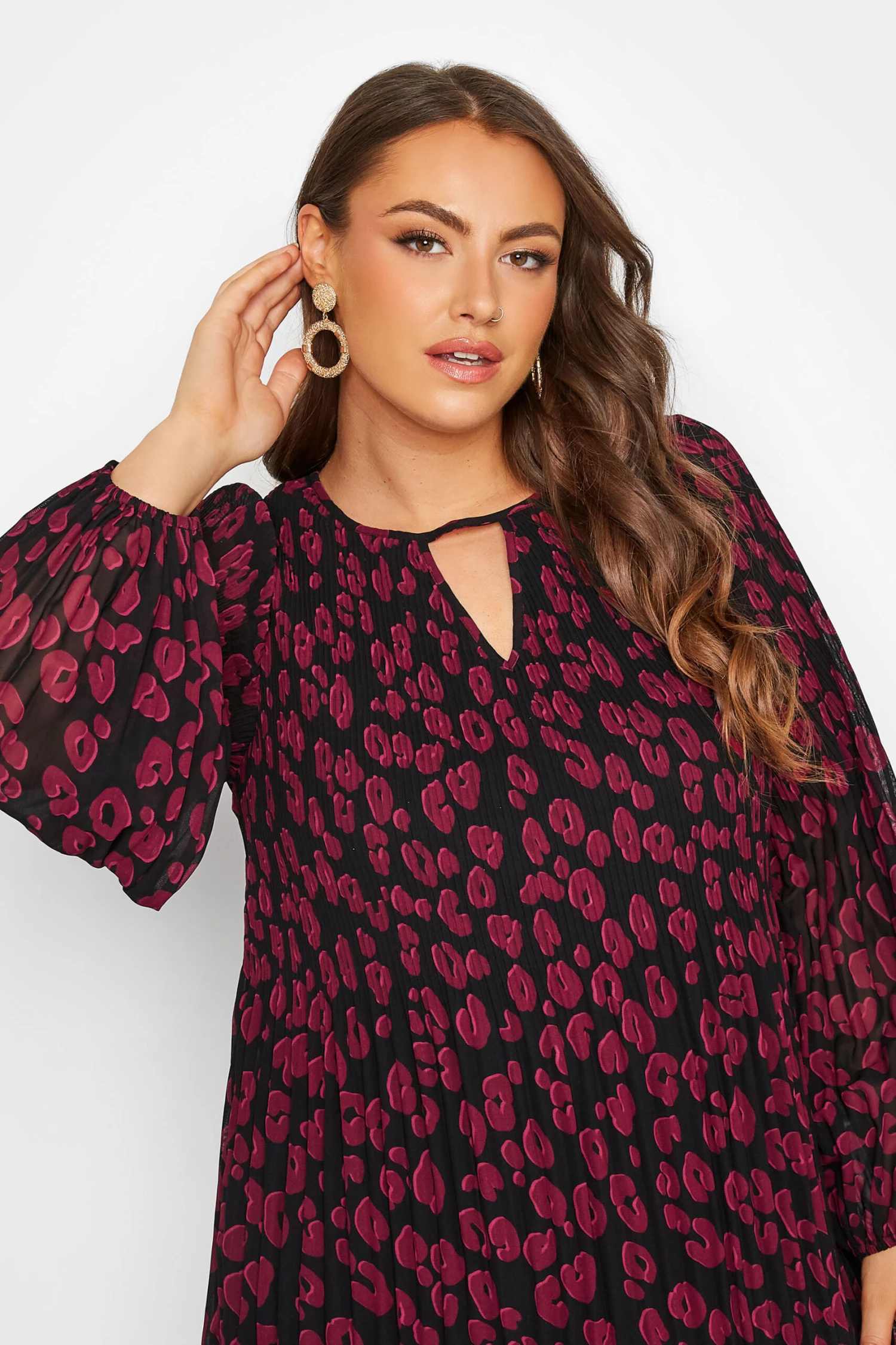 Wondering what to wear this weekend? Why not try this new-in pleated blouse from Yours London. Made from a soft woven fabric, it features an animal print with long balloon sleeves and cut out neck detail. Team with jeans and heels for an effortless evening look that you’ll want to wear on repeat this season.