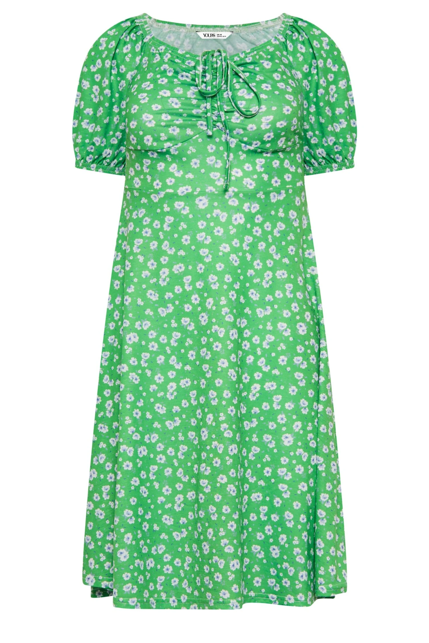 This new in midi dress is a must-have! Made from a comfortable jersey fabric, this dress features short sleeves in a daisy design with a scoop neckline, and a ruched front. Style with trainers for a look you can wear with confidence.